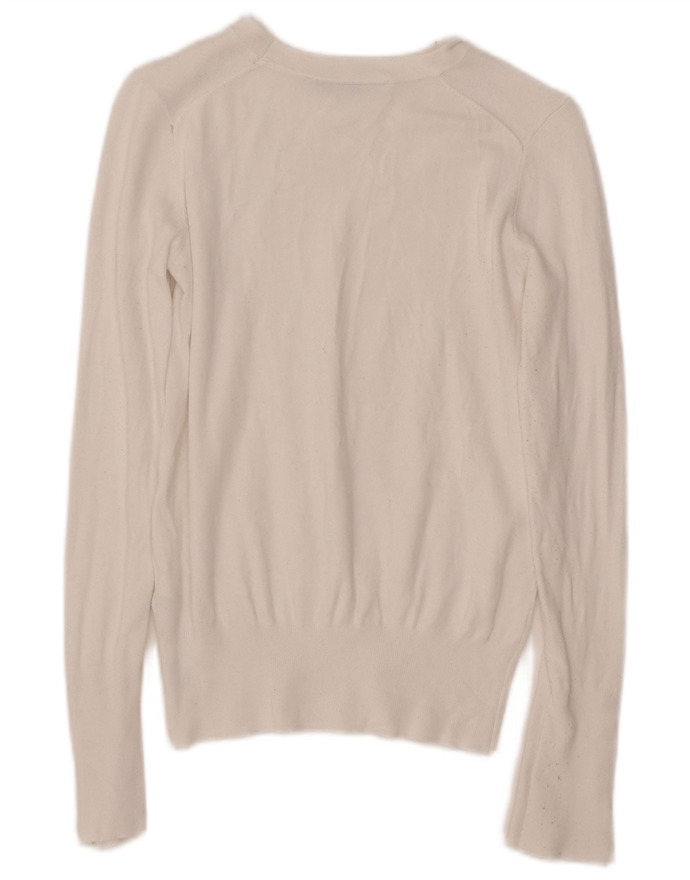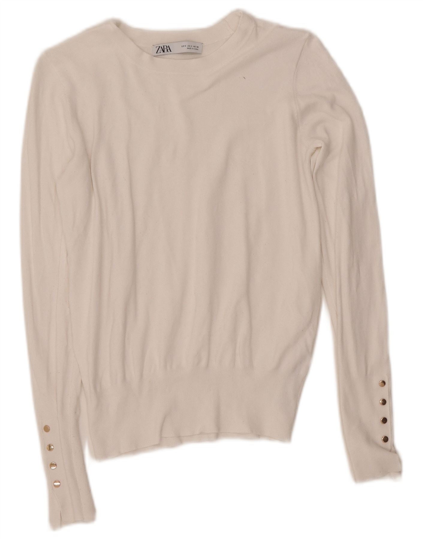 ZARA Femme Pull Col Bateau UK 10 Petit Viscose Blanc