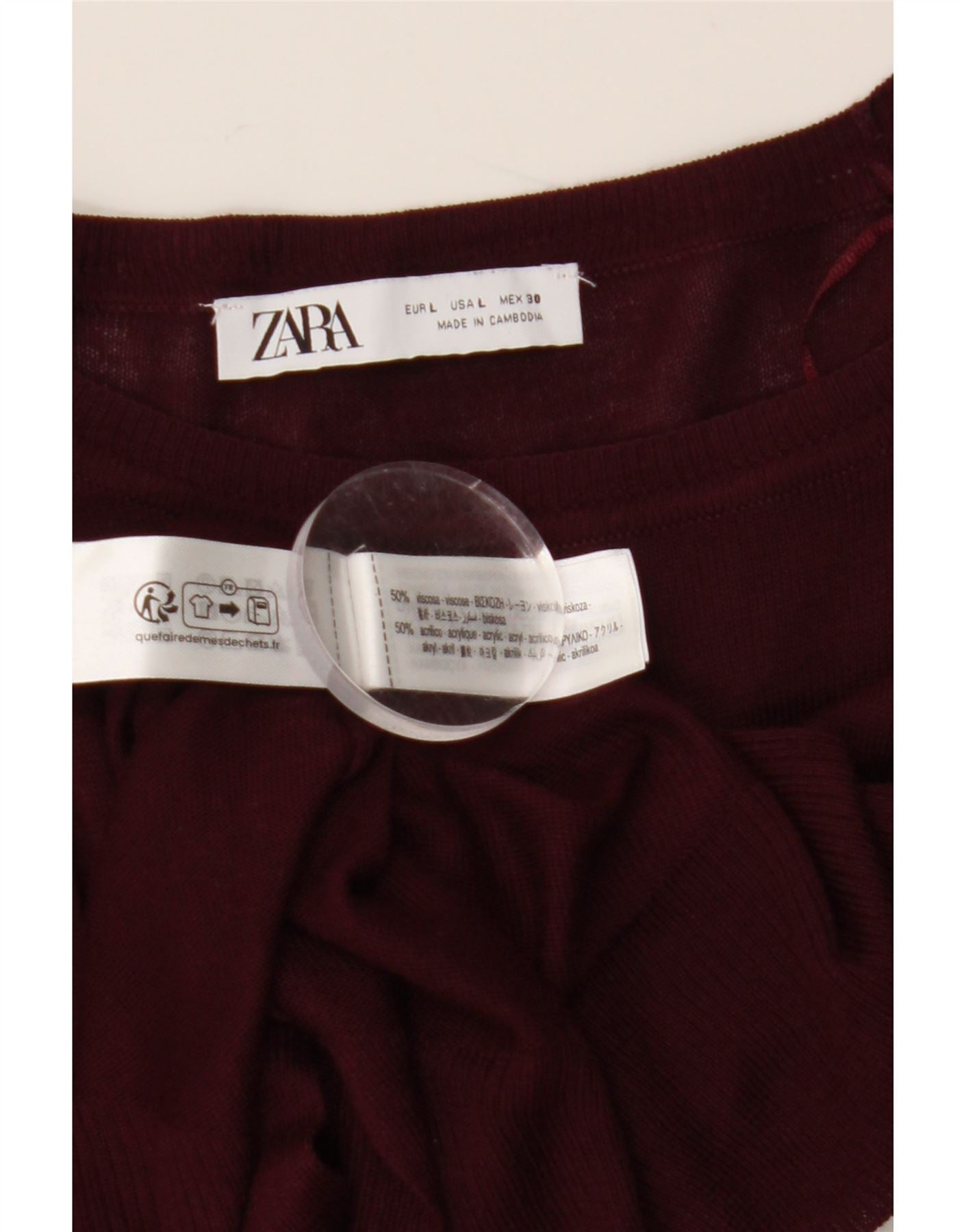 ZARA Femme Pull Col Bateau UK 16 Large Bordeaux Viscose
