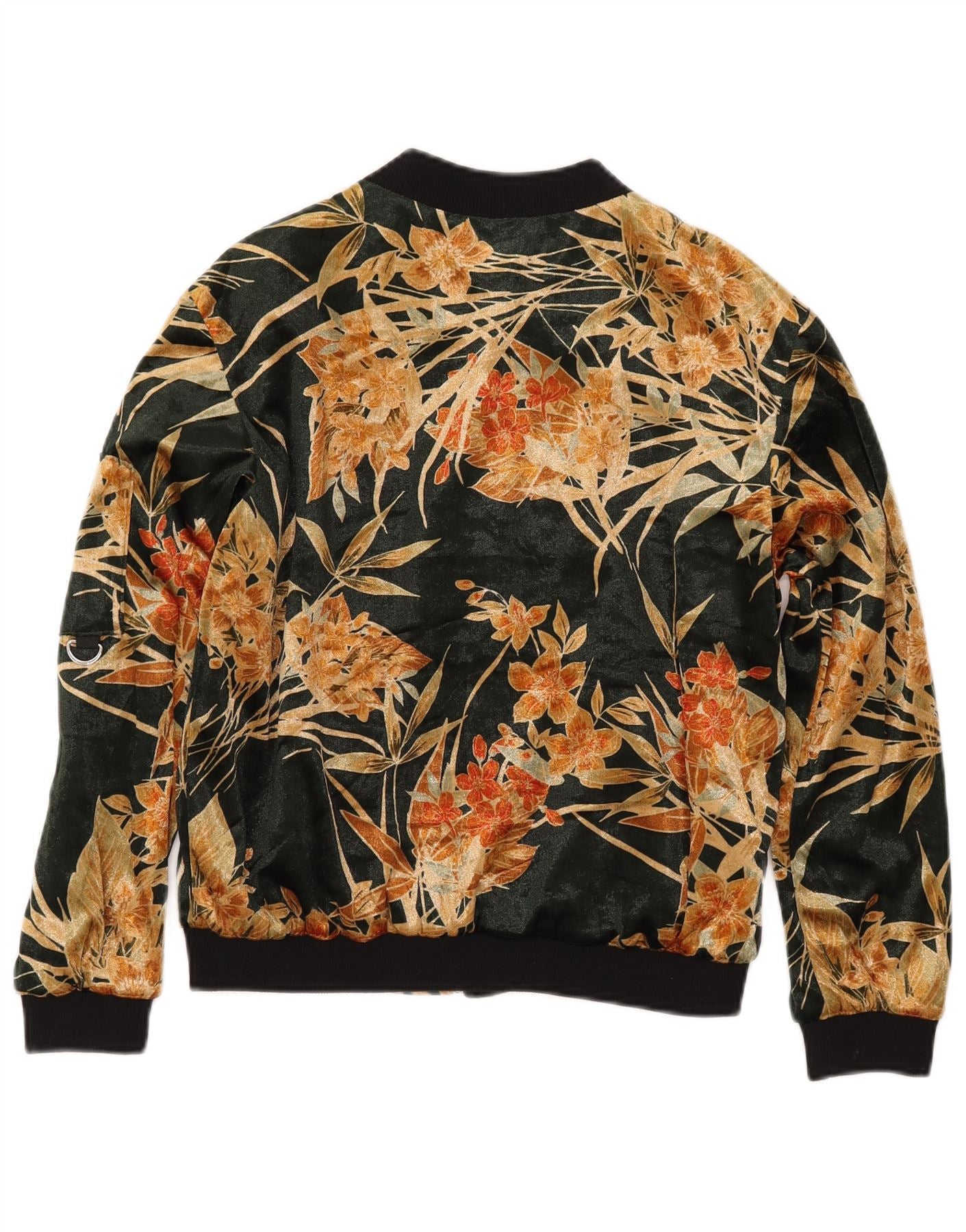 ZARA Veste Bomber Femme UK 14 Coton Floral Vert Moyen