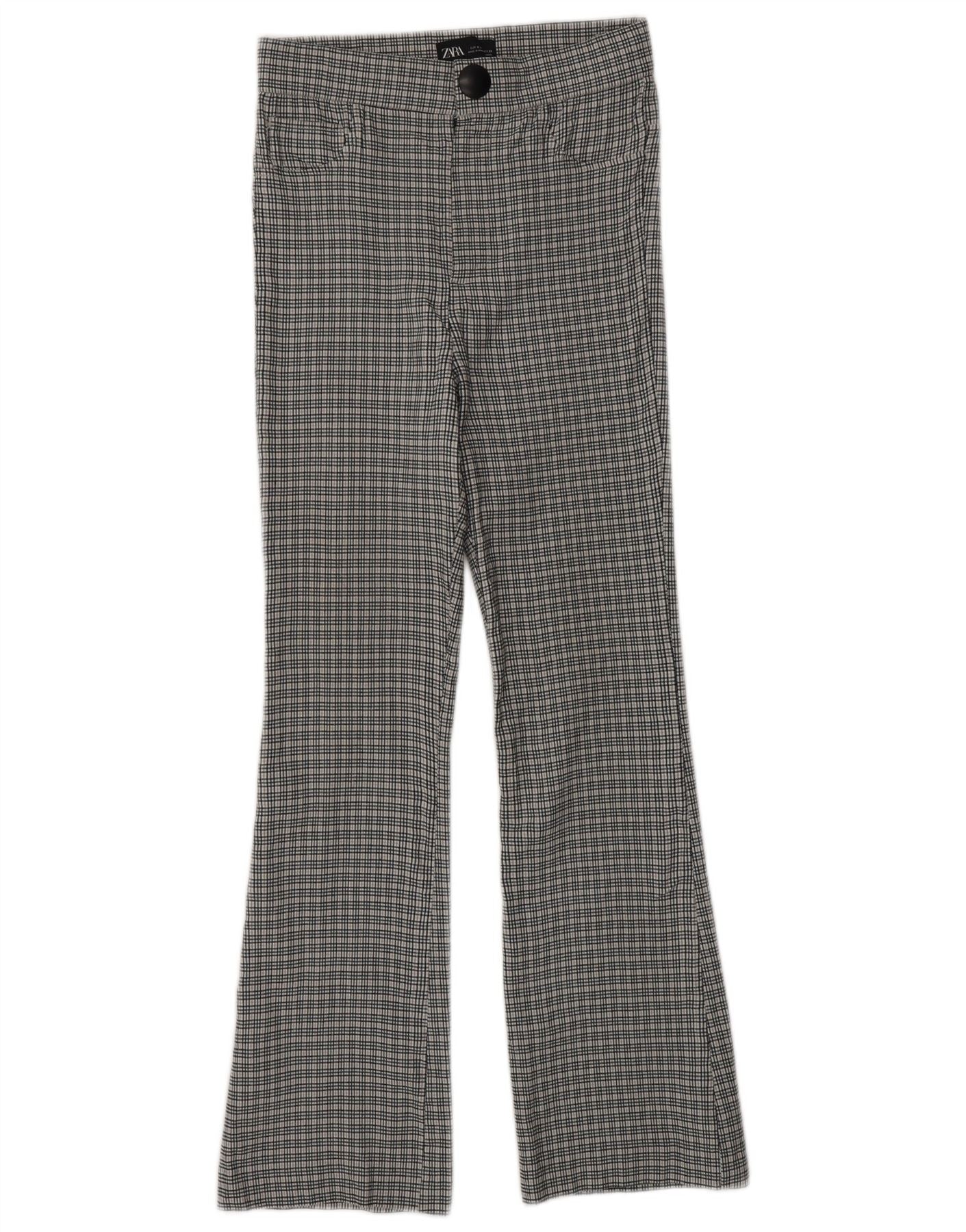 ZARA Pantalon décontracté Bootcut pour femme Petit W26 L26 Gris Chevron
