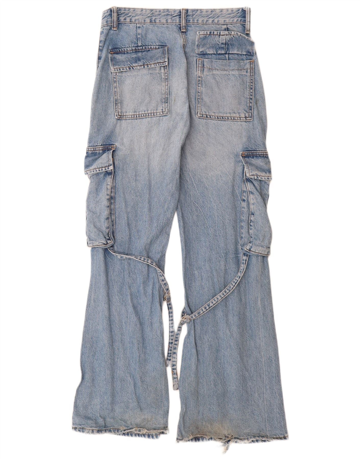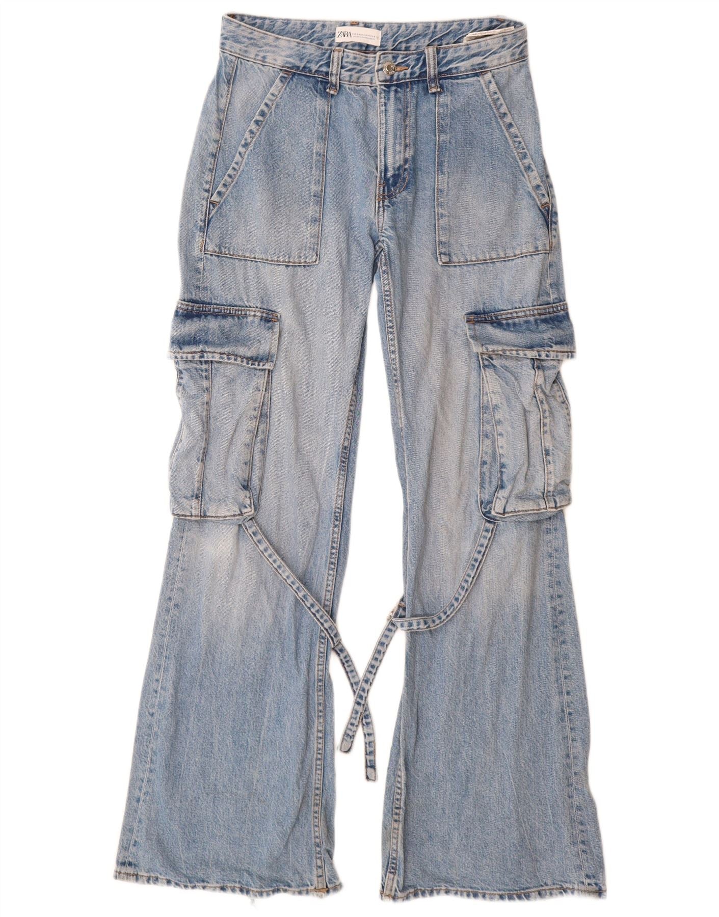 ZARA Jean cargo évasé pour femme EU 34 2XS W24 L32 Bleu Coton