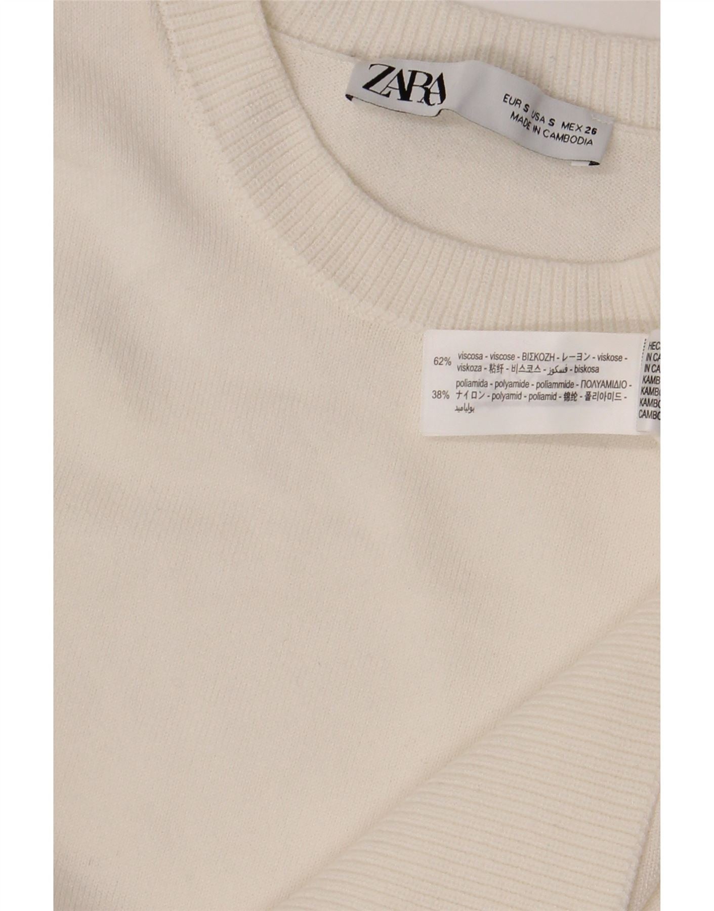 Zara Pull ras du cou pour femme UK 10 Petite Viscose Blanche