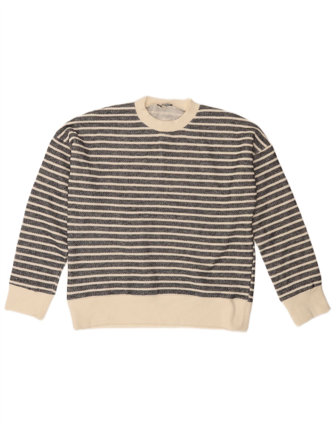 ZARA Pull à col rond pour femme UK 14 Polyester rayé noir moyen