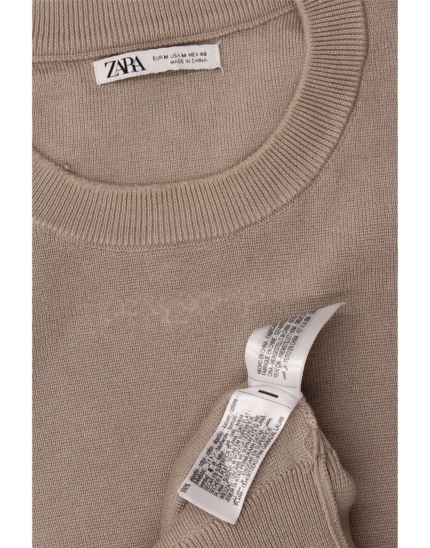 ZARA Pull à col rond pour femme UK 14 Coton gris moyen