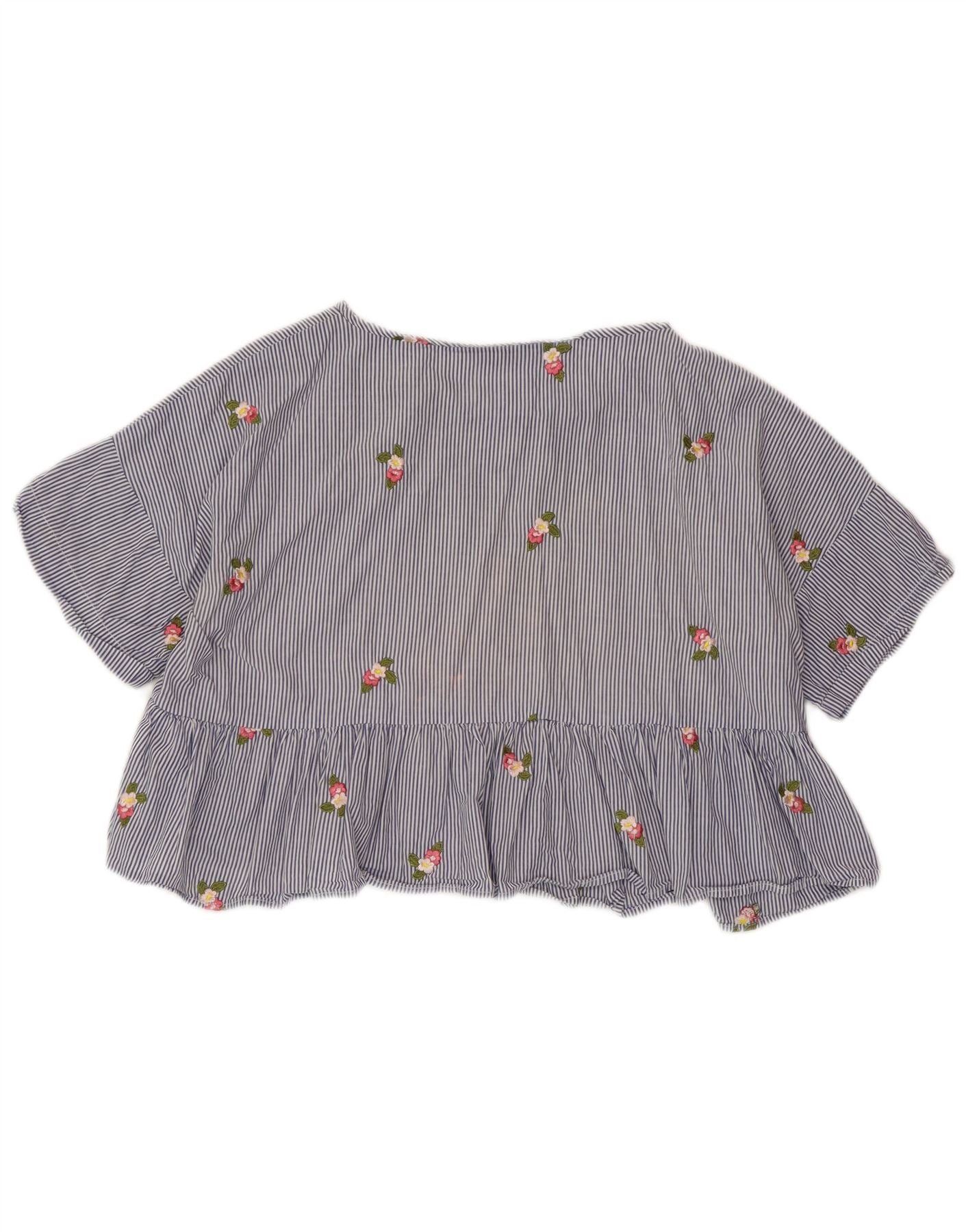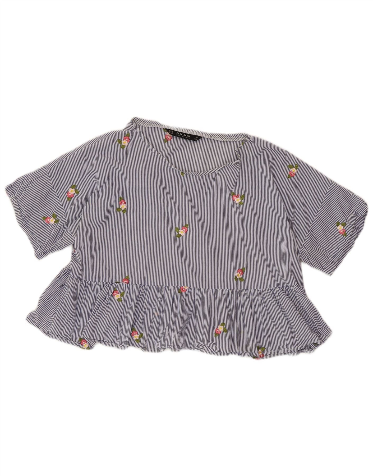 ZARA Womens Crop Blouse Top UK 14 Bleu moyen à fines rayures