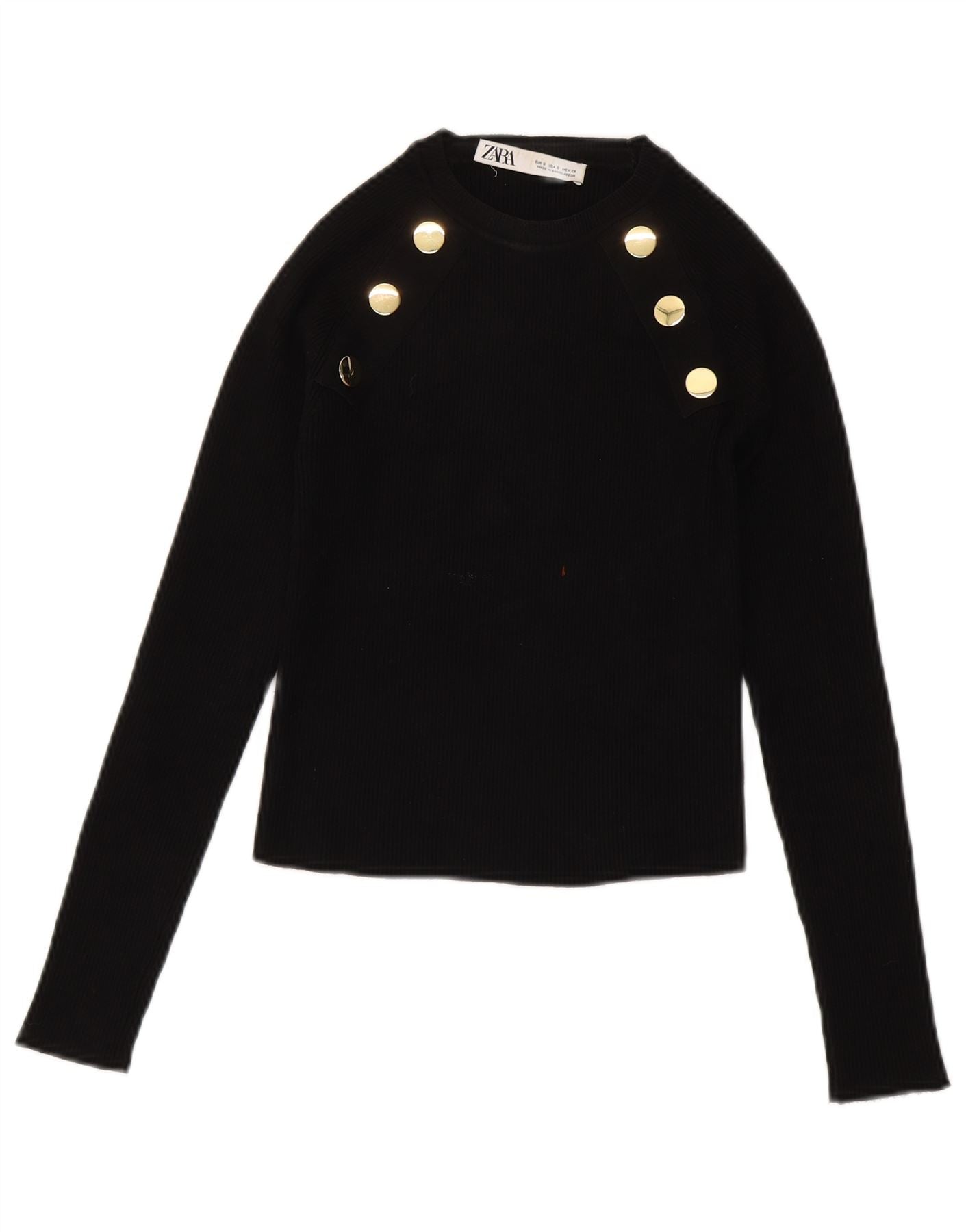 ZARA Pull court à col bateau pour femme UK 8 Small Noir Viscose