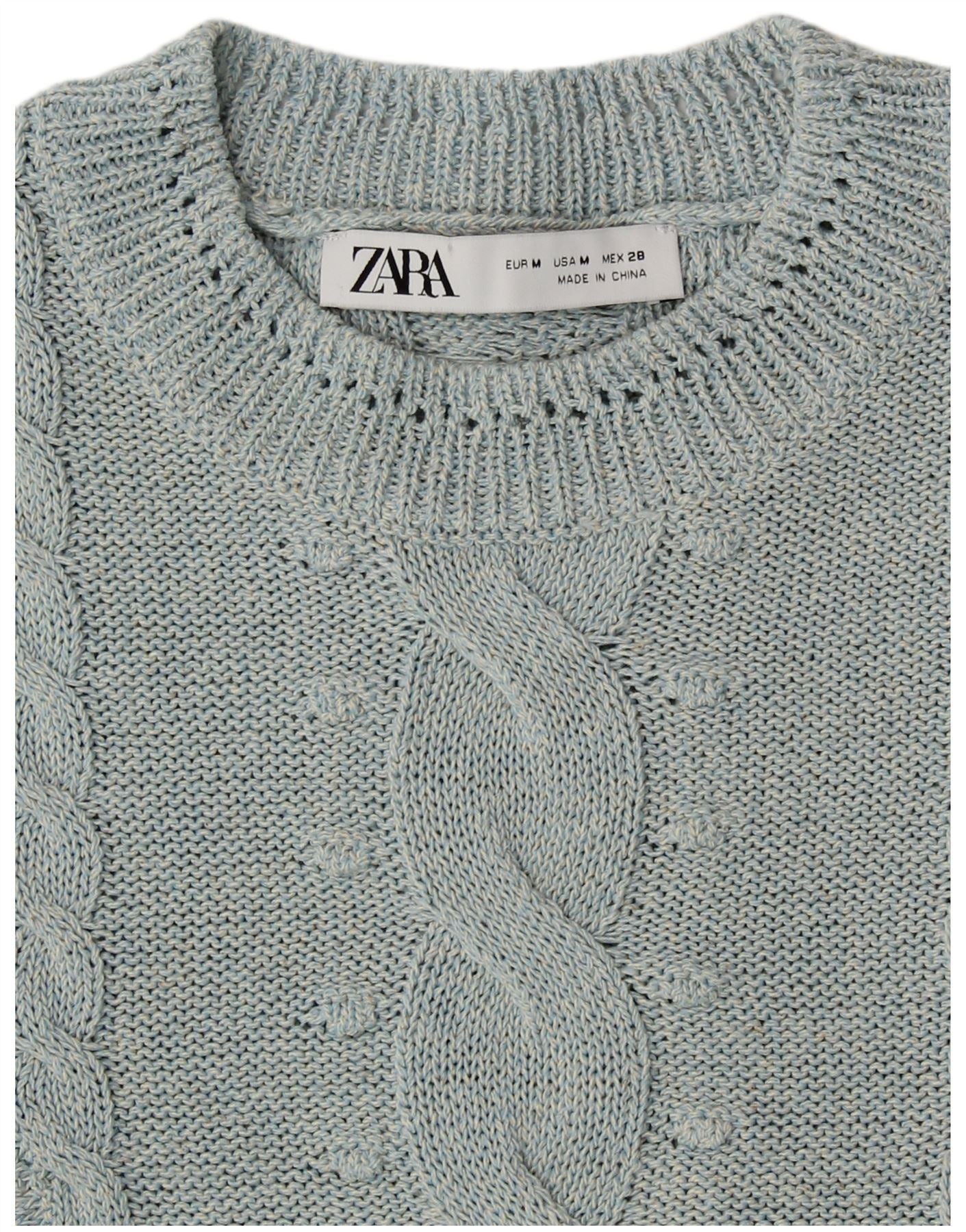 ZARA Pull court à col rond pour femme UK 14 Bleu moyen