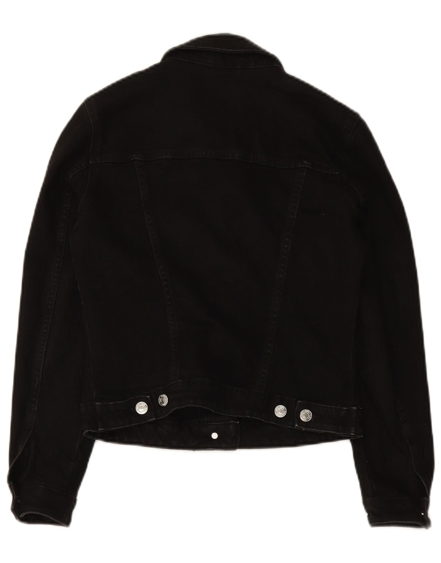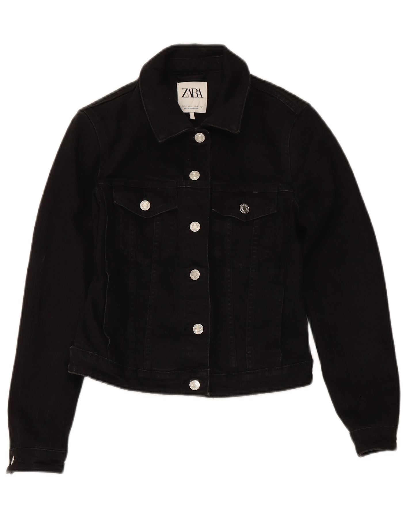 ZARA Veste en jean courte pour femme UK 10 Petit coton noir