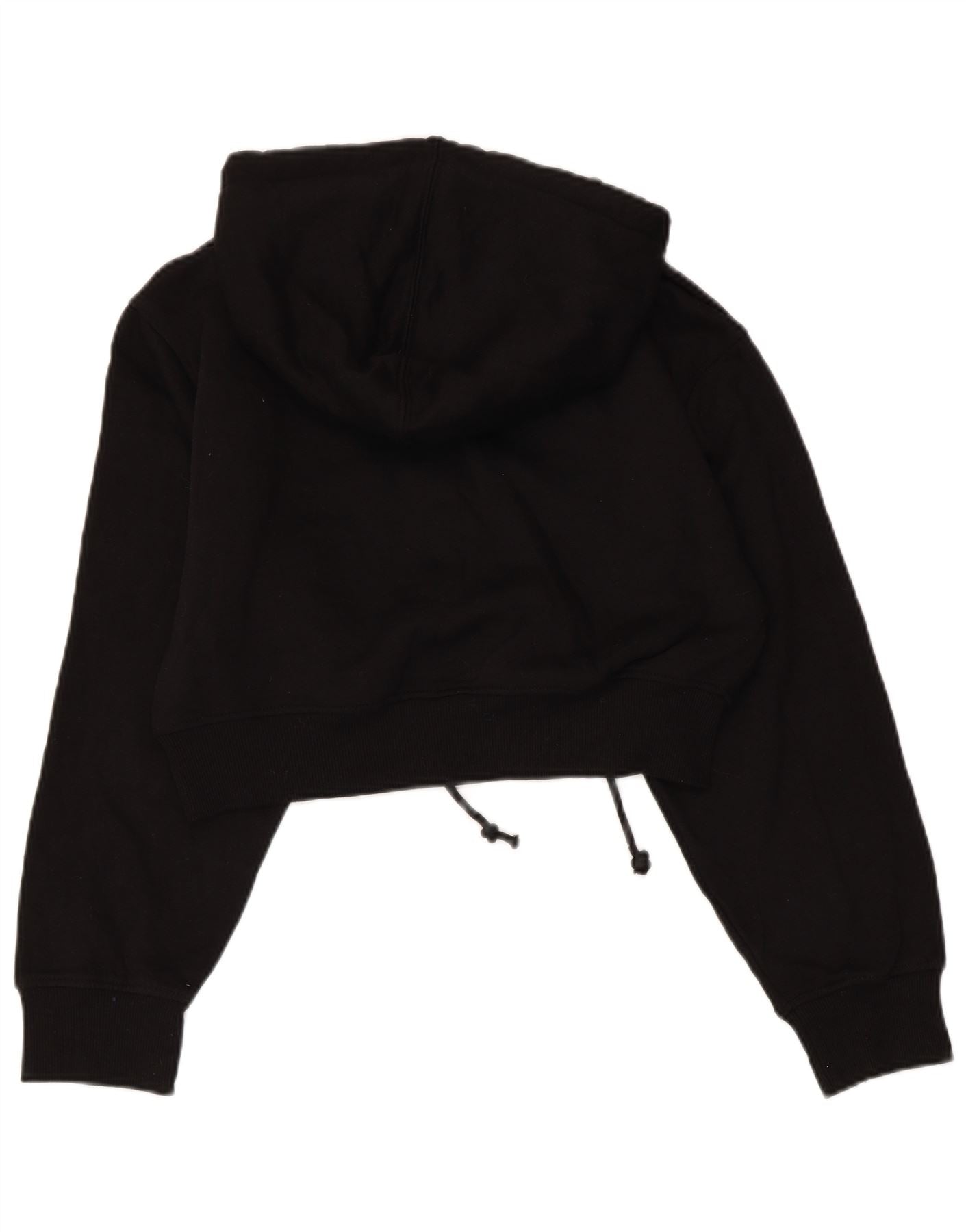 ZARA Pull à capuche court pour femme UK 10 Small Noir Polyester