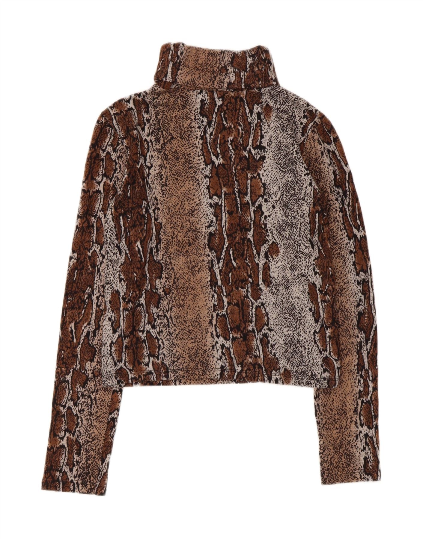 ZARA Womens Crop Roll Neck Jumper Sweater UK 10 Small Brown Animal Print