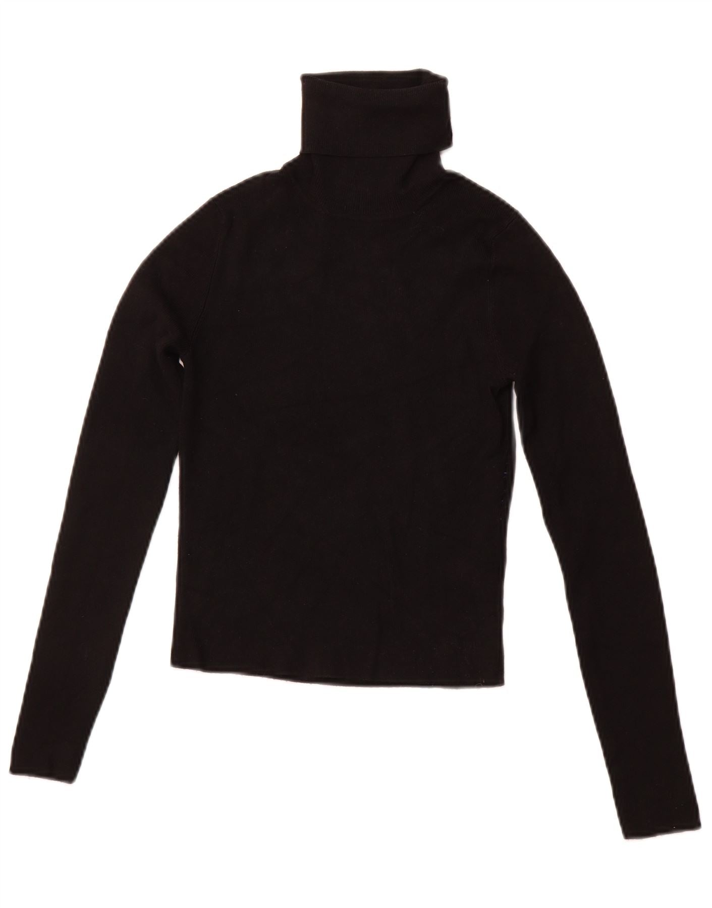 ZARA Femme Pull court à col roulé UK 12 Medium Noir Viscose