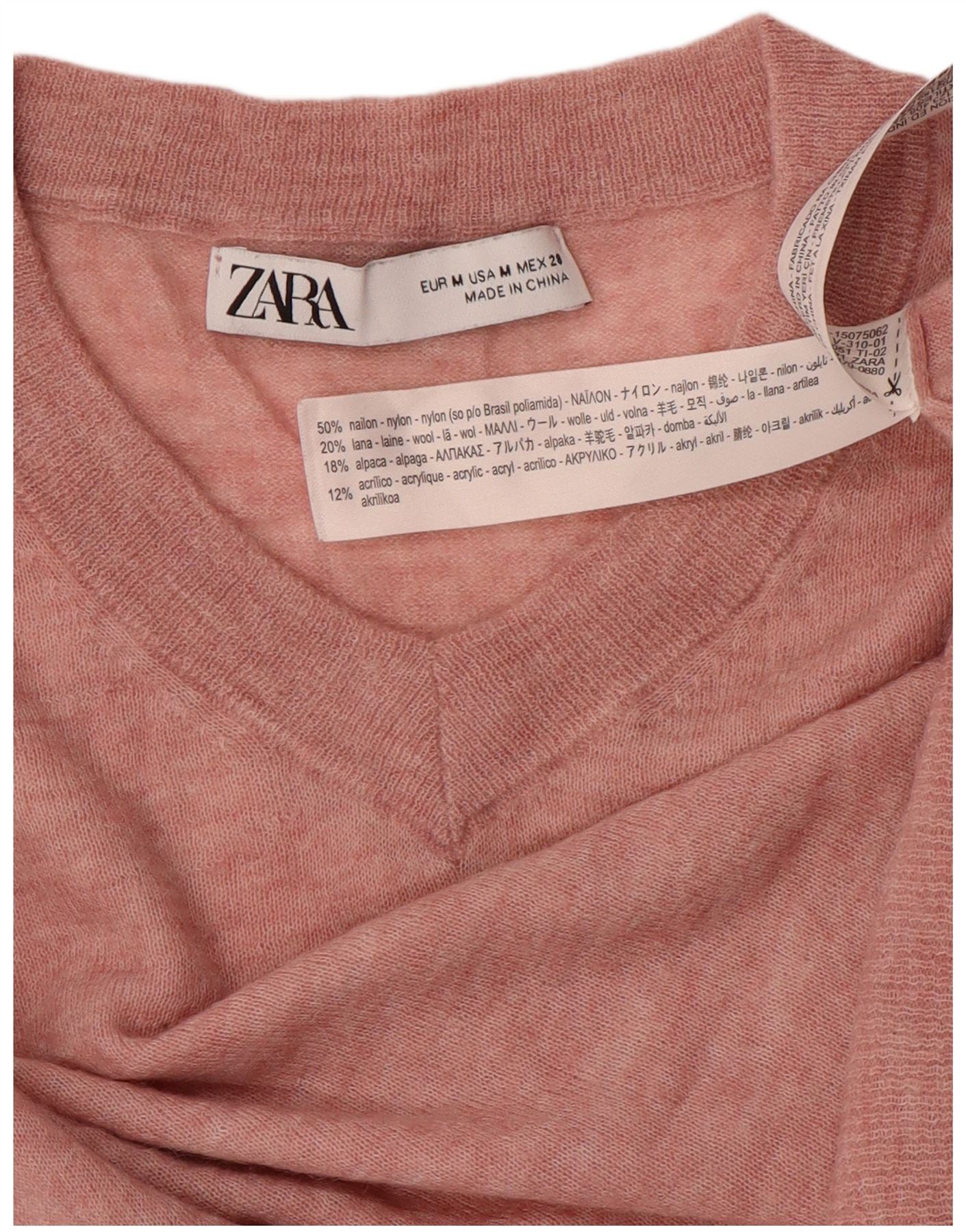 ZARA Pull court à col en V pour femme UK 12 Nylon rose moyen