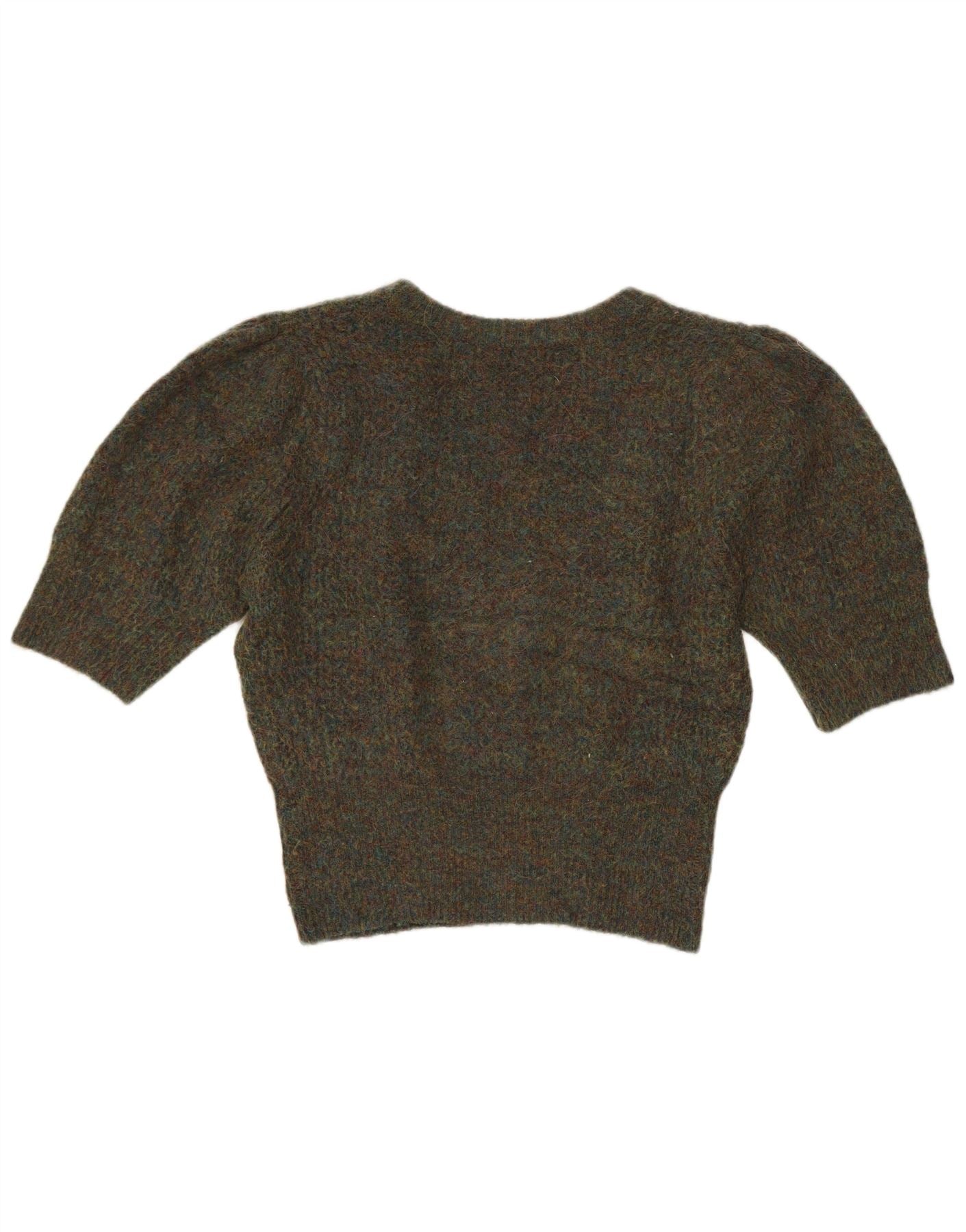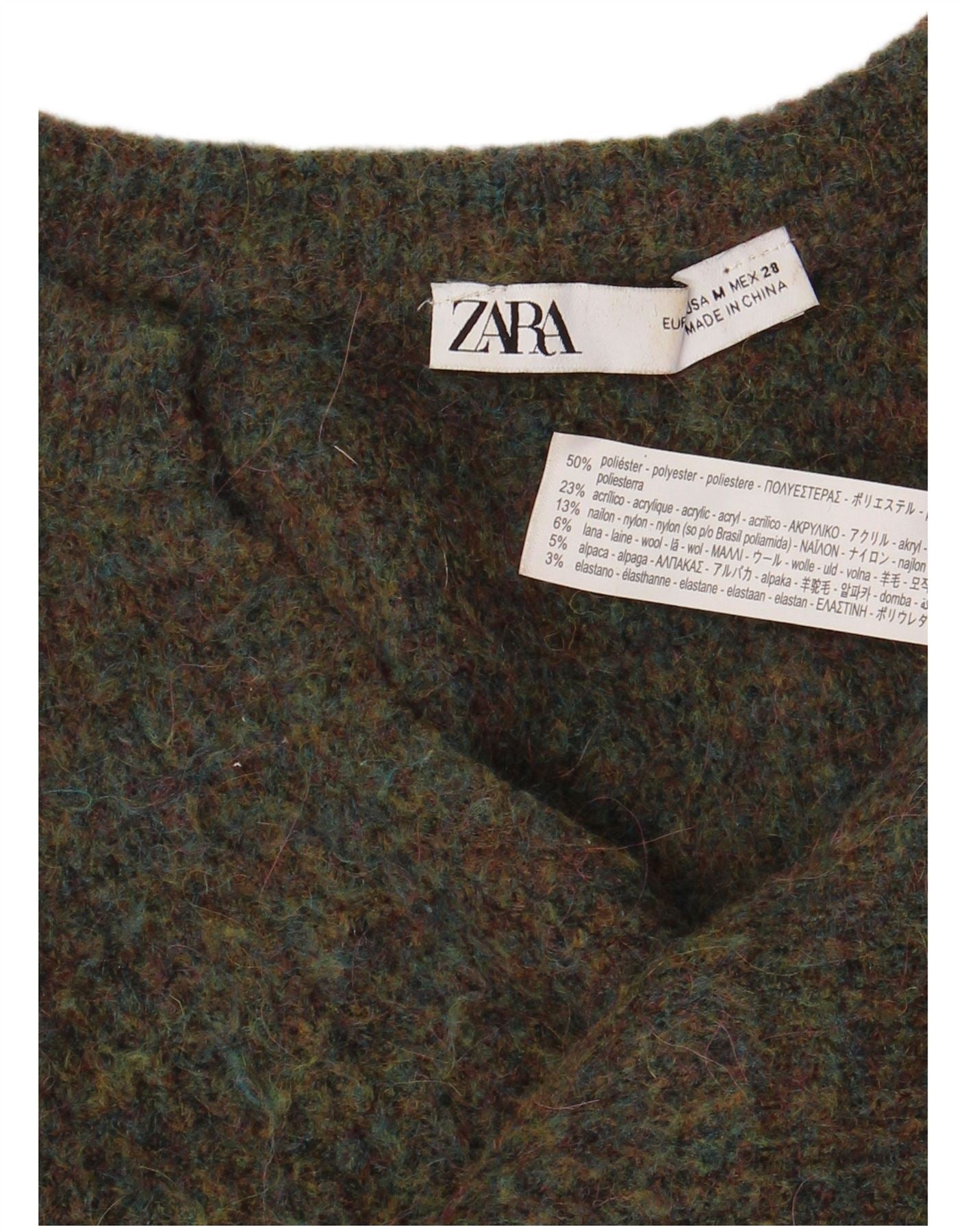 Zara Pull court à col en V pour femme UK 14 Kaki moyen moucheté