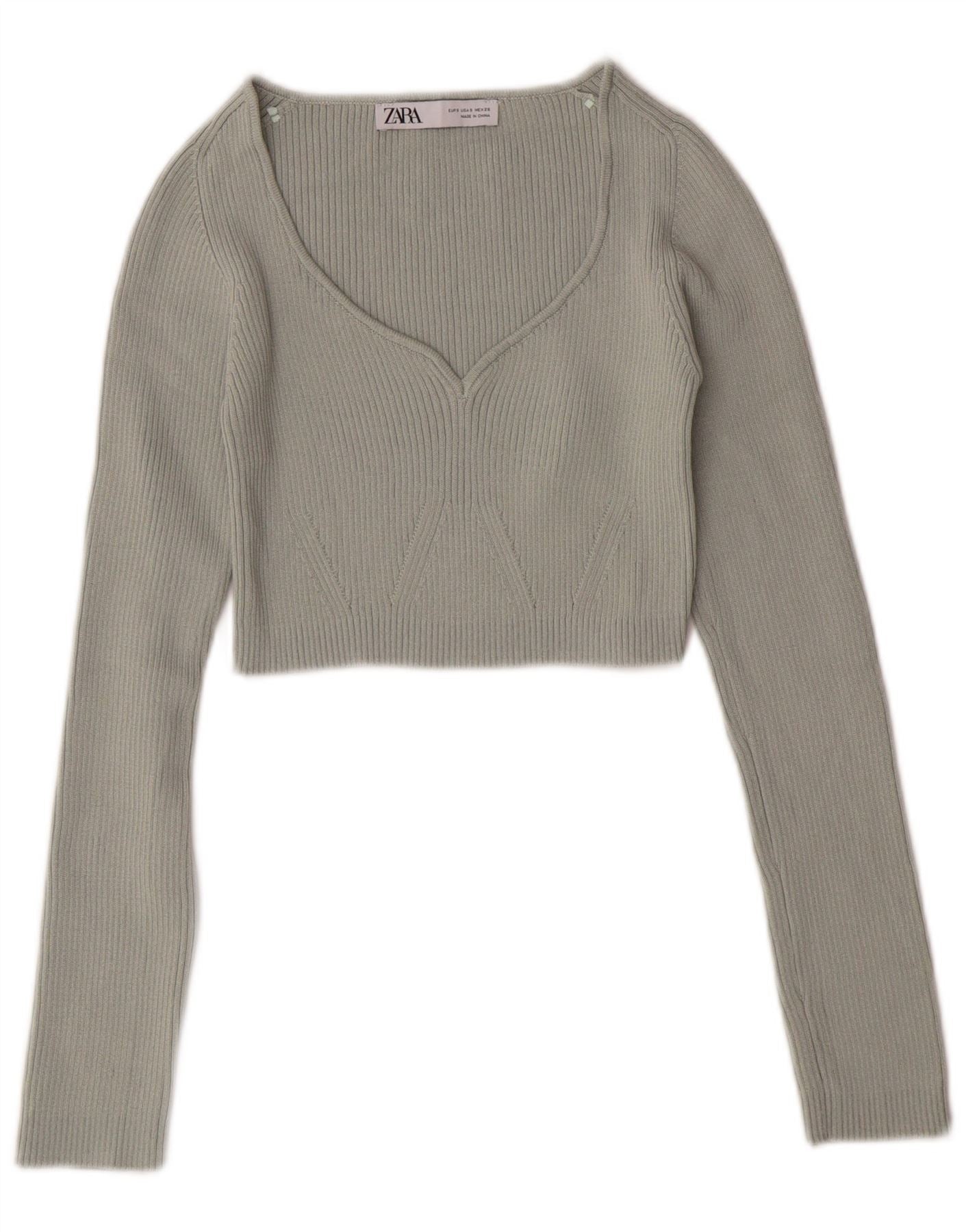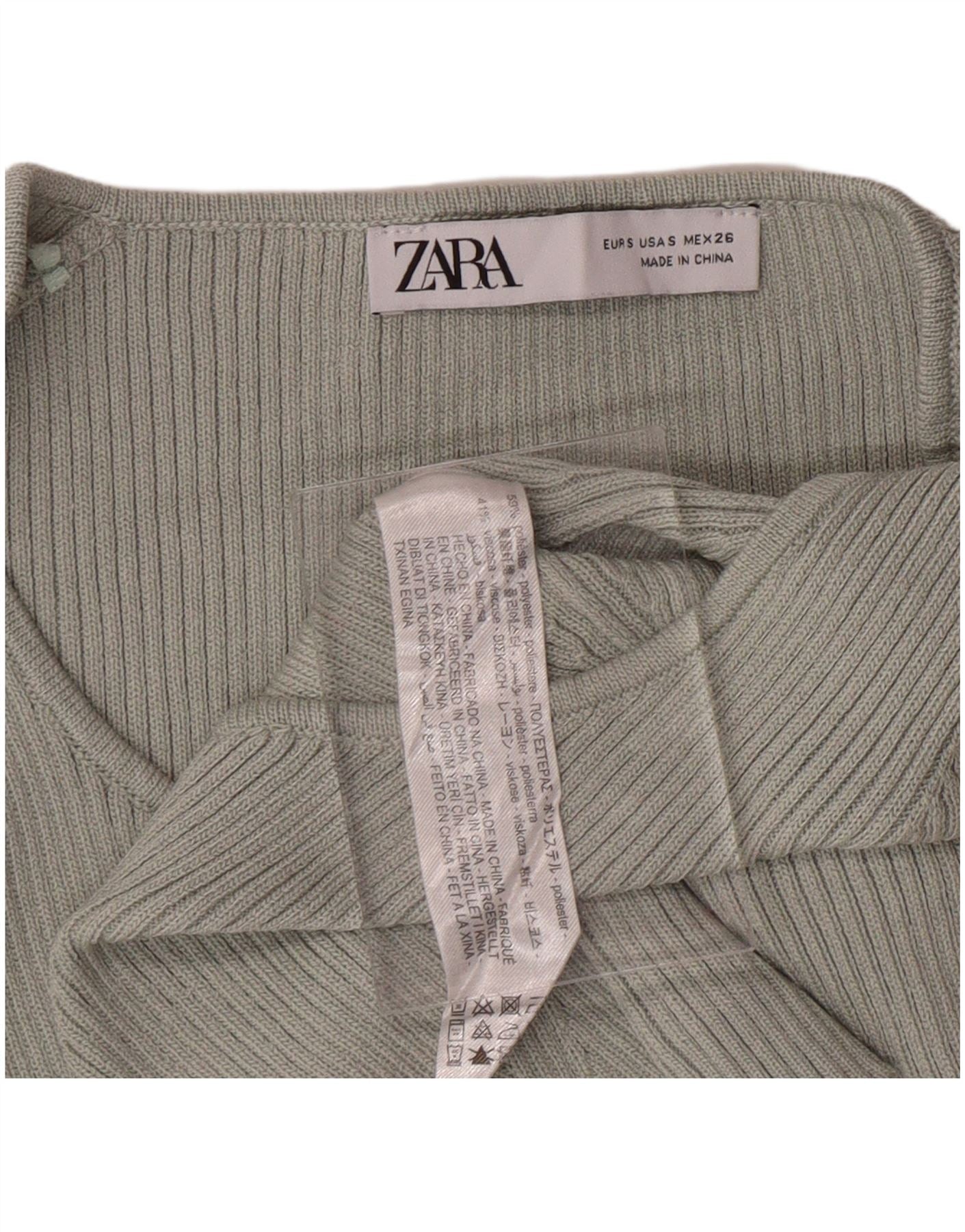 ZARA Pull court à col en V pour femme UK 8 Small Vert Polyester