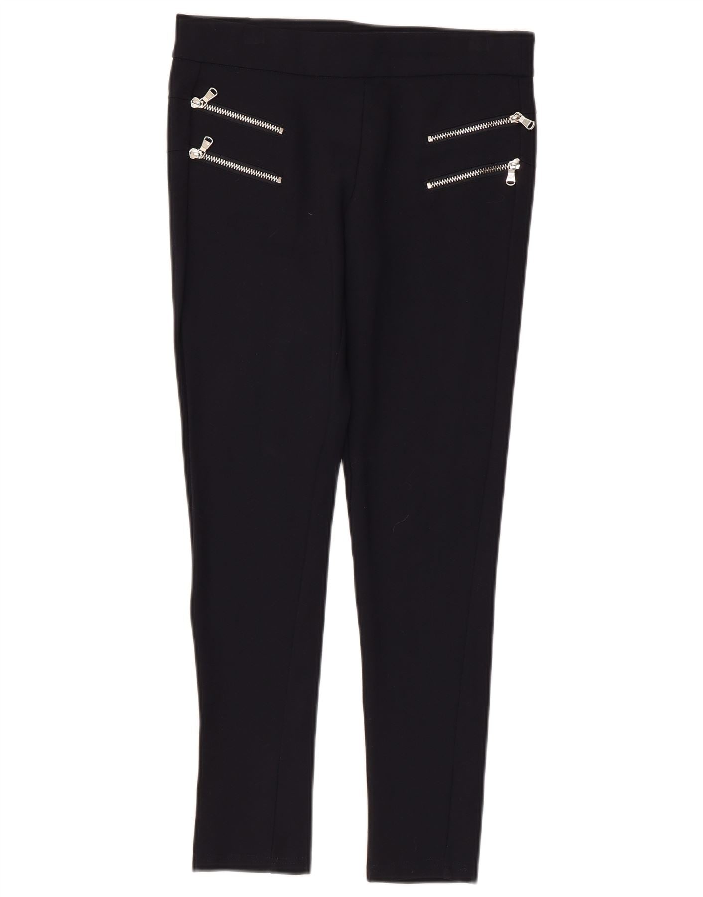 - Description de l'IA : Ce pantalon court Zara pour femme est confectionné dans un tissu jersey noir confortable et extensible. Ils présentent un design à enfiler et une coupe slim legging. Le style biker moderne est rehaussé par des poches zippées décoratives sur le devant. Ce pantalon offre à la fois confort et une silhouette élégante et contemporaine, parfaite pour un style polyvalent.