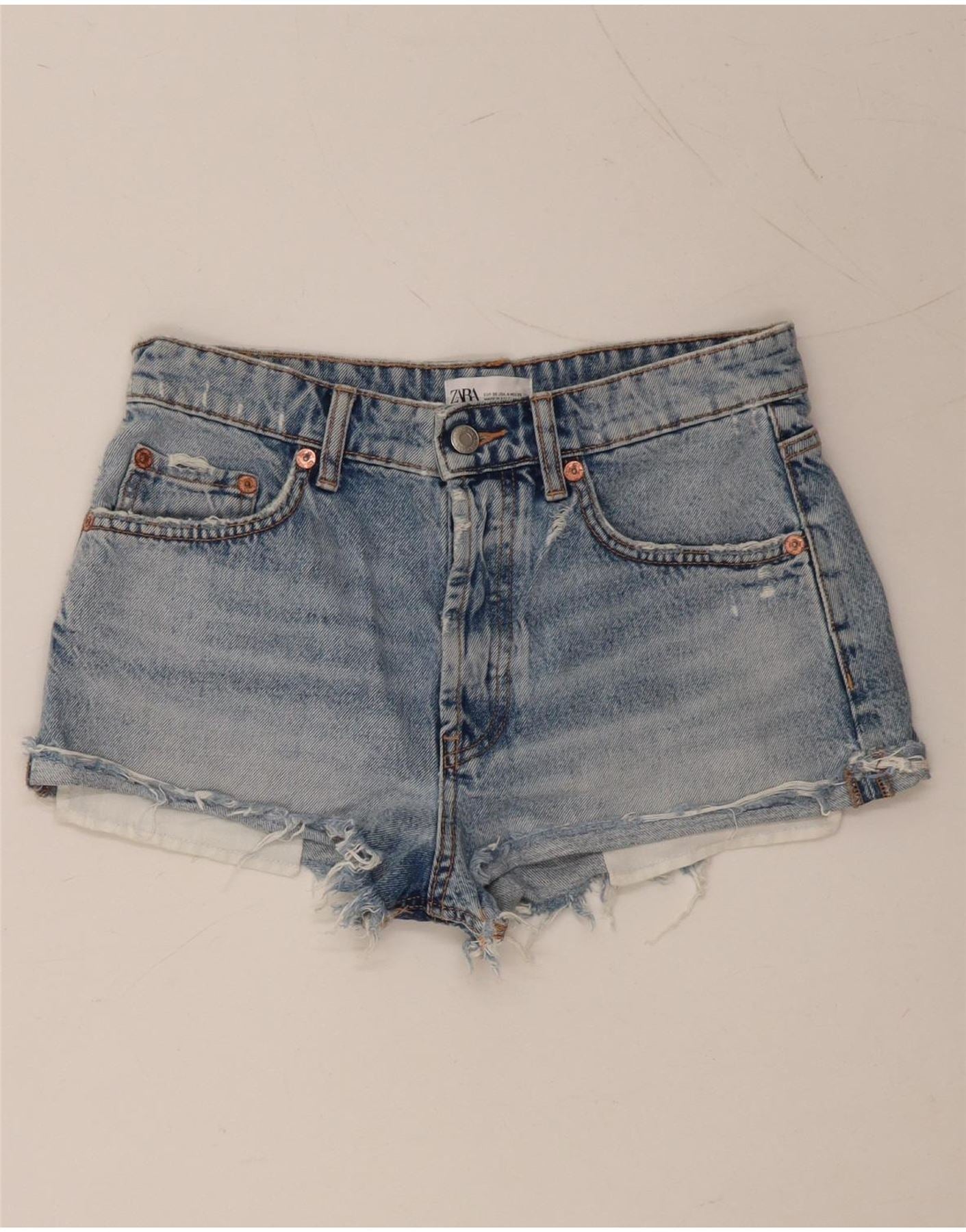 ZARA Short en jean vieilli pour femme EU 36 XS W26 Bleu Coton