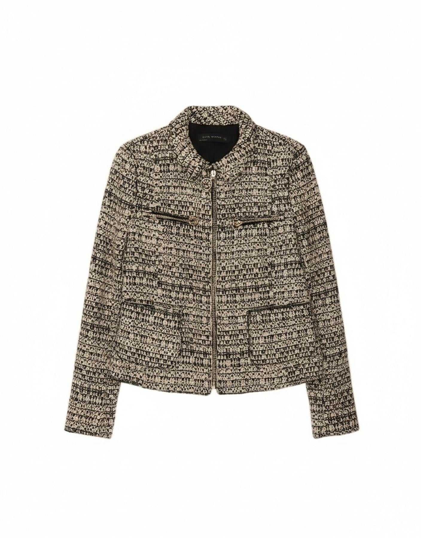 Zara Womens Full Zip Blazer Jacket UK 10 Petit Gris Moucheté