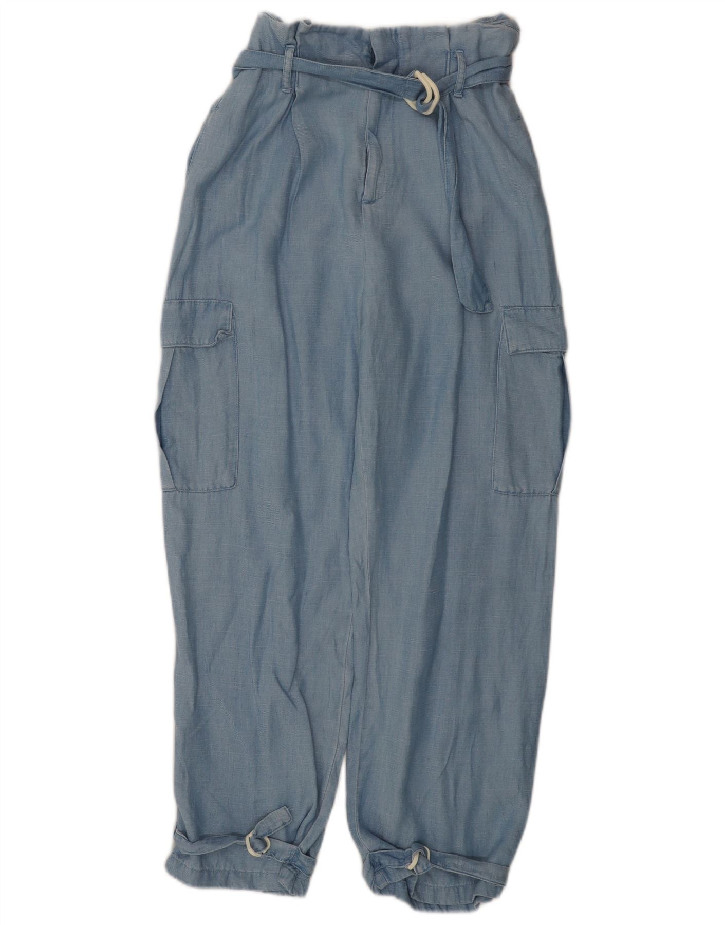 ZARA Pantalon cargo taille haute coupe ample pour femme Small W26 L26 Bleu