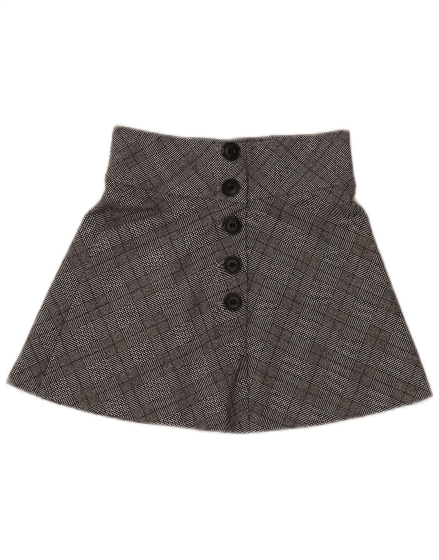 Zara Femme Taille Haute Mini Jupe XS W26 Gris Plaid