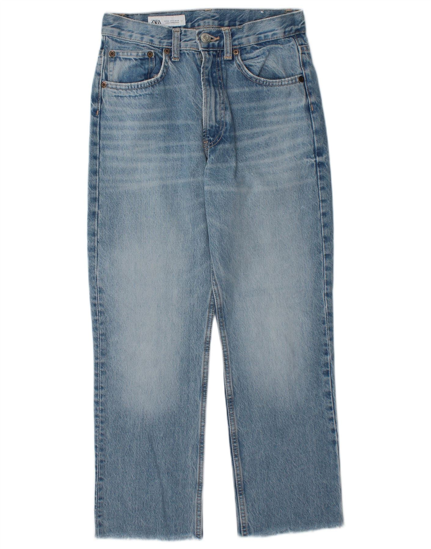 Jean droit taille haute pour femme ZARA EU 36 XS W26 L26 bleu coton