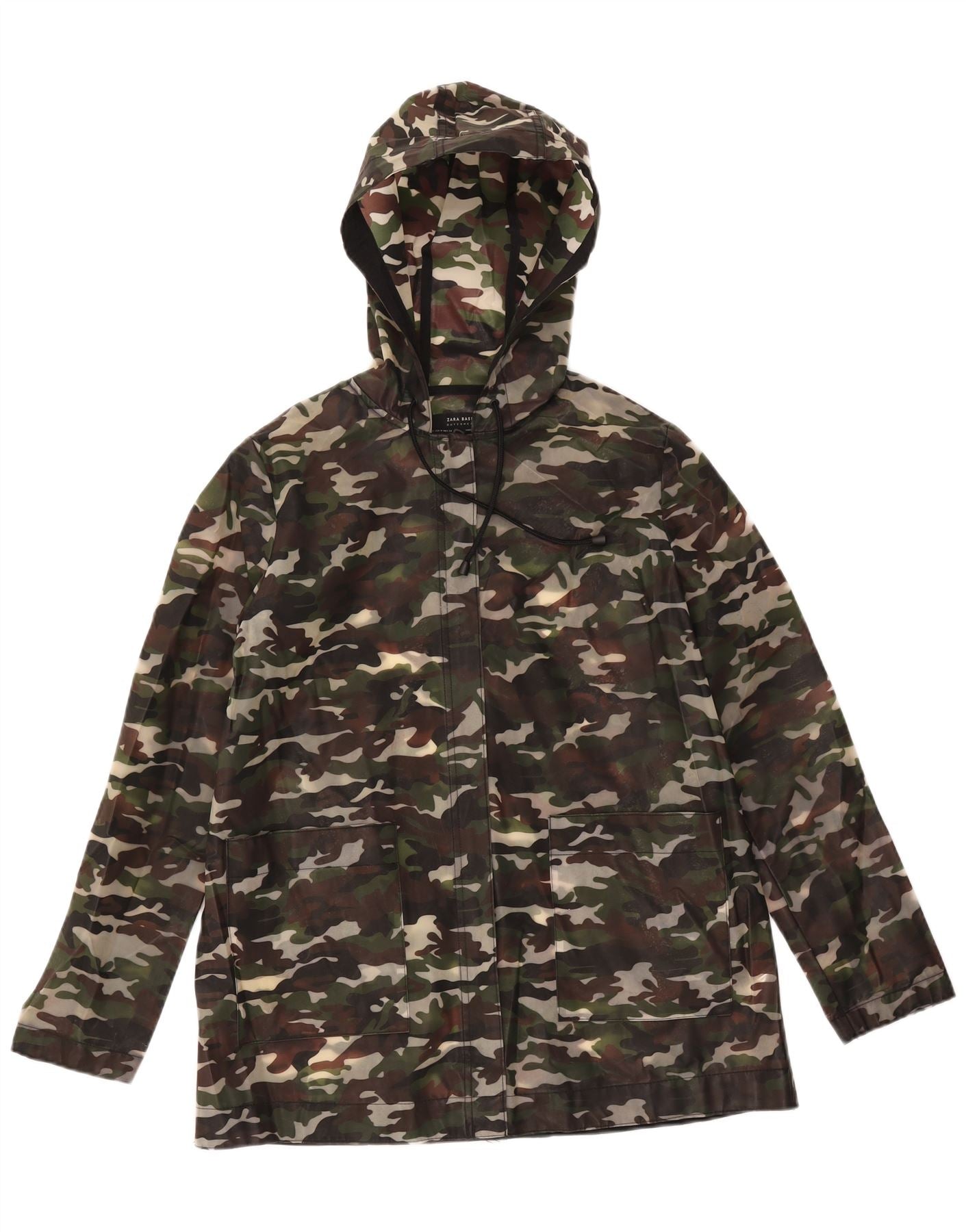 ZARA Veste militaire à capuche pour femme UK 14 Medium Khaki Camouflage