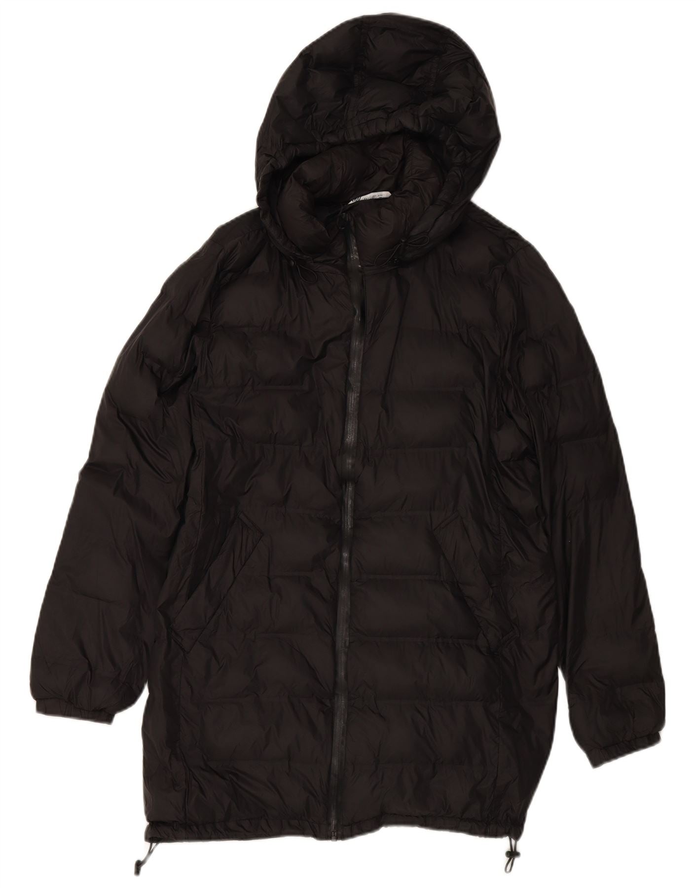 ZARA Manteau matelassé à capuche pour femme UK 16 Large Noir Polyester