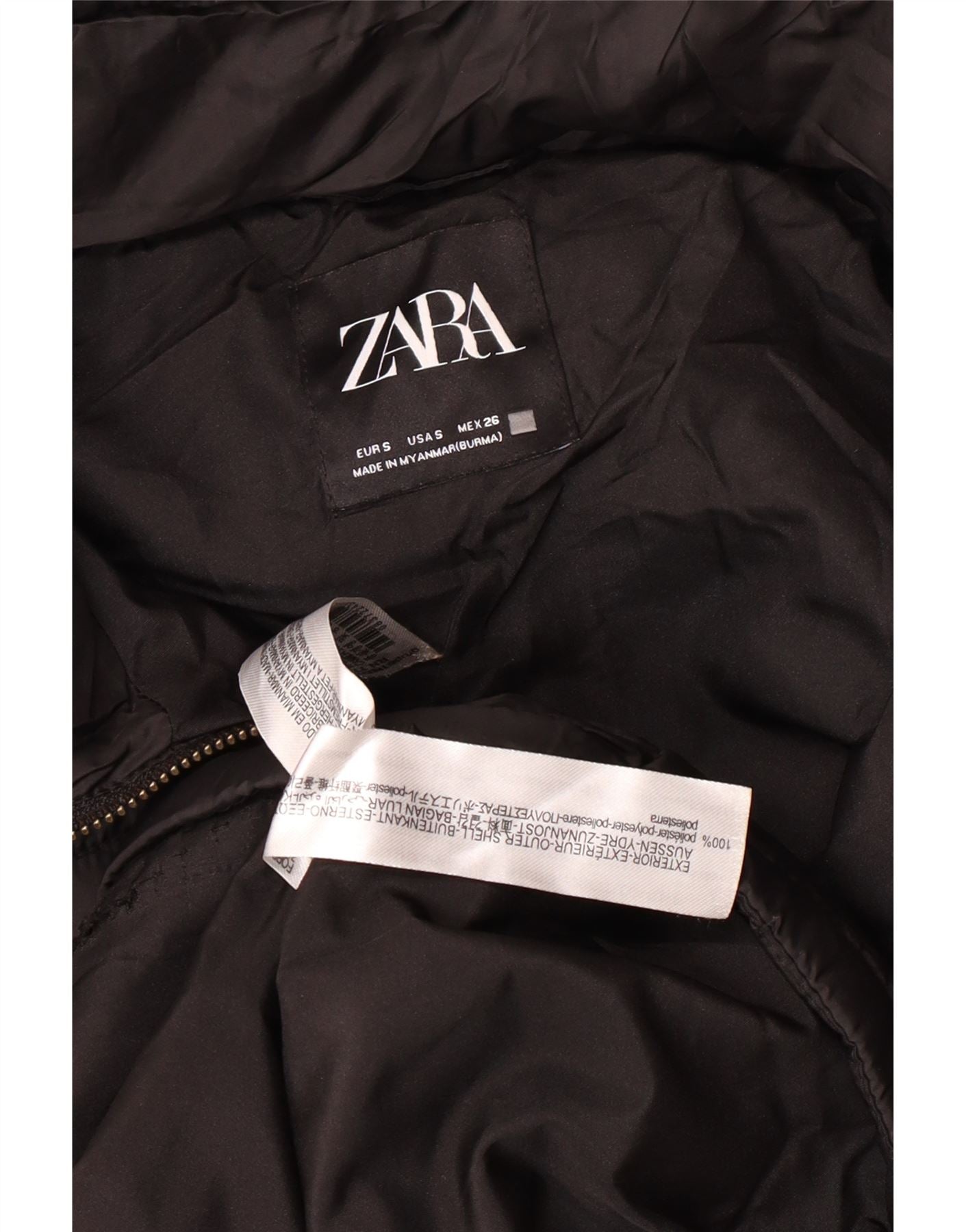 ZARA Veste matelassée à capuche pour femme UK 10 Small Noir Polyester