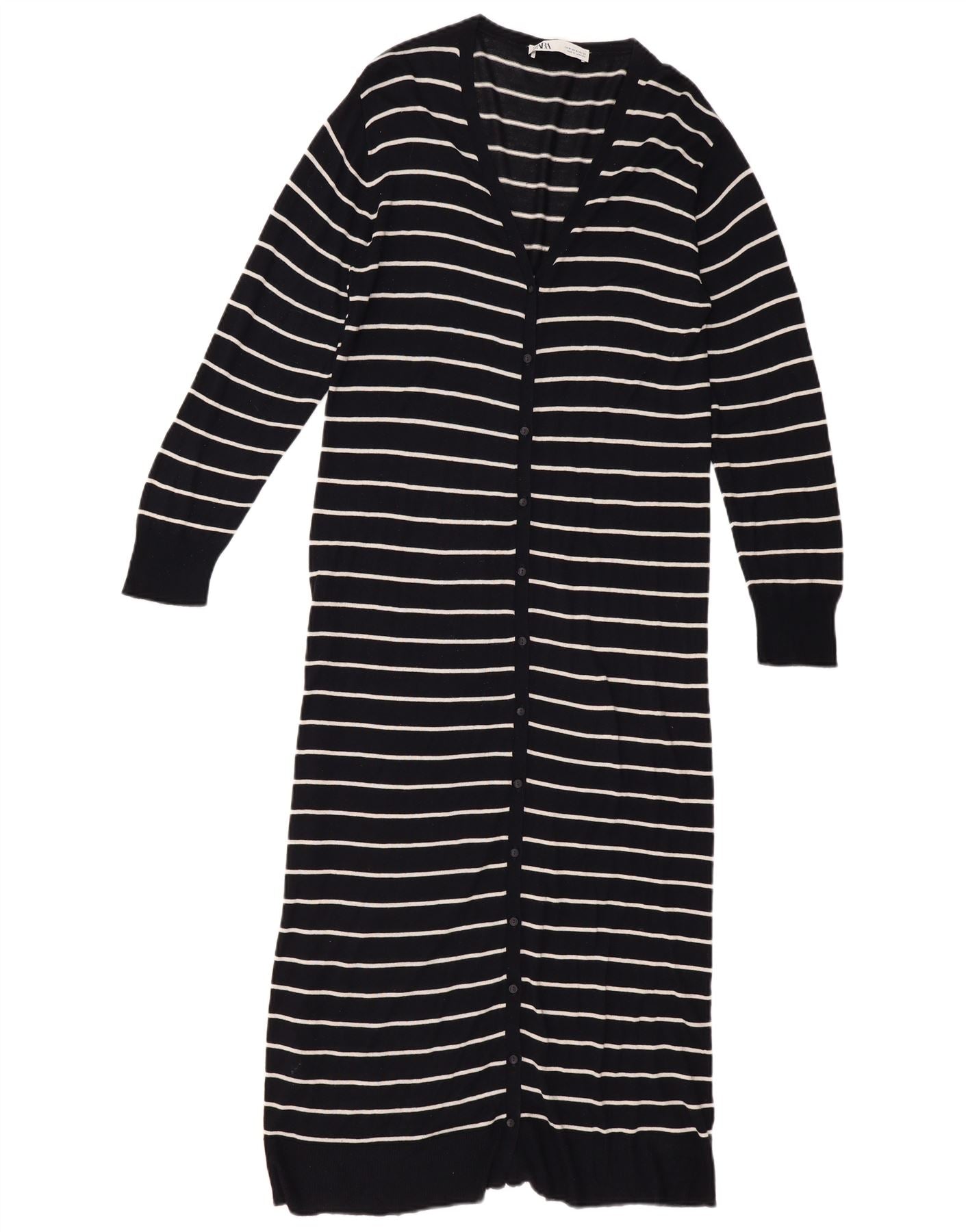Zara Cardigan long pour femme en viscose rayée noire moyenne UK 44