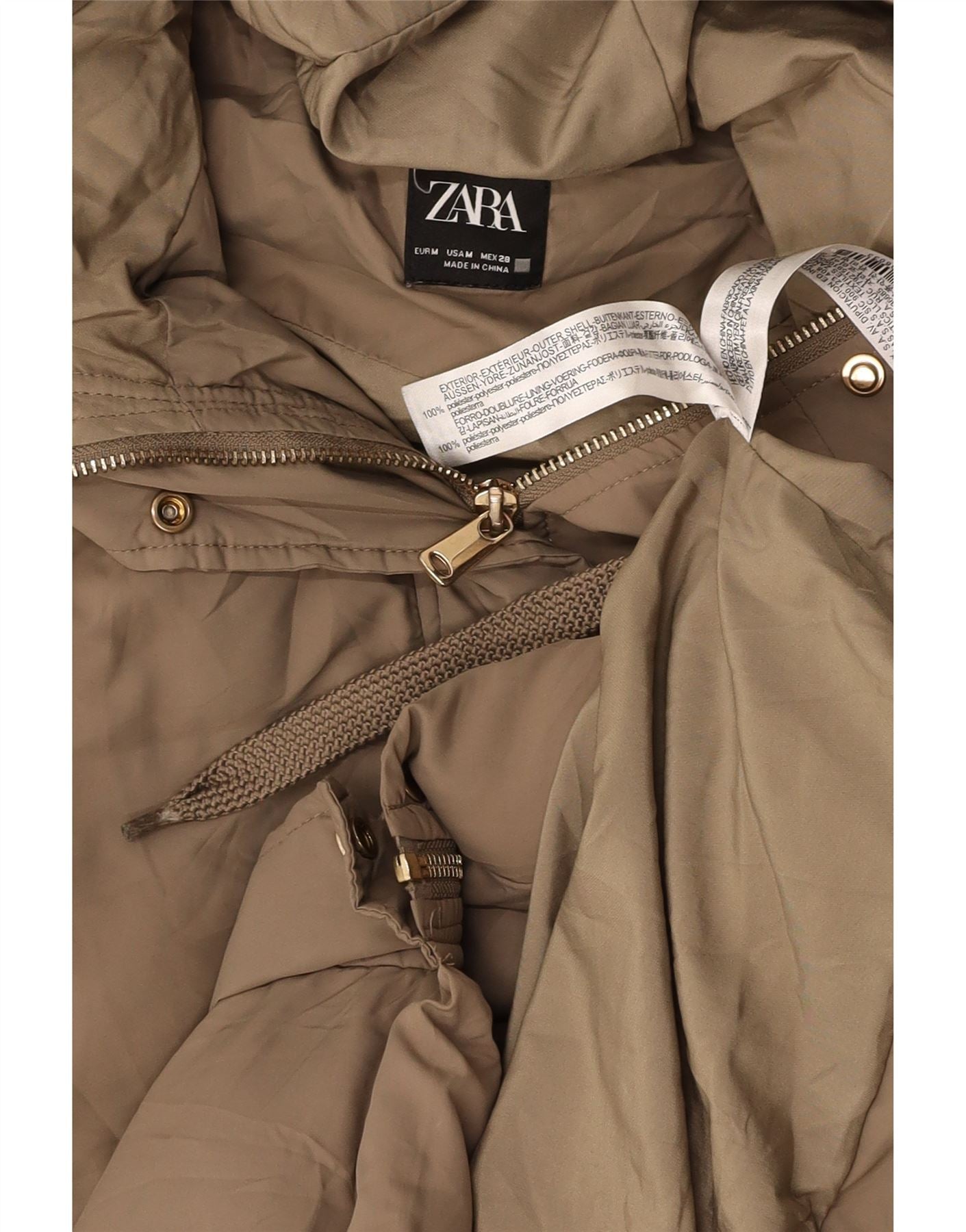 Gilet rembourré à capuche long pour femme ZARA UK 12 Polyester beige moyen
