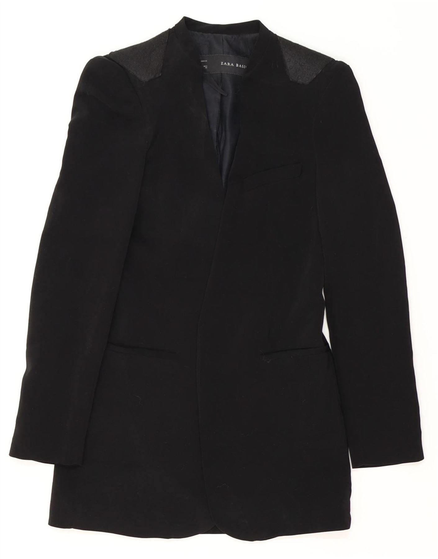 ZARA Femme Veste Blazer Ouverte Longue UK 10 Petit Acétate Noir