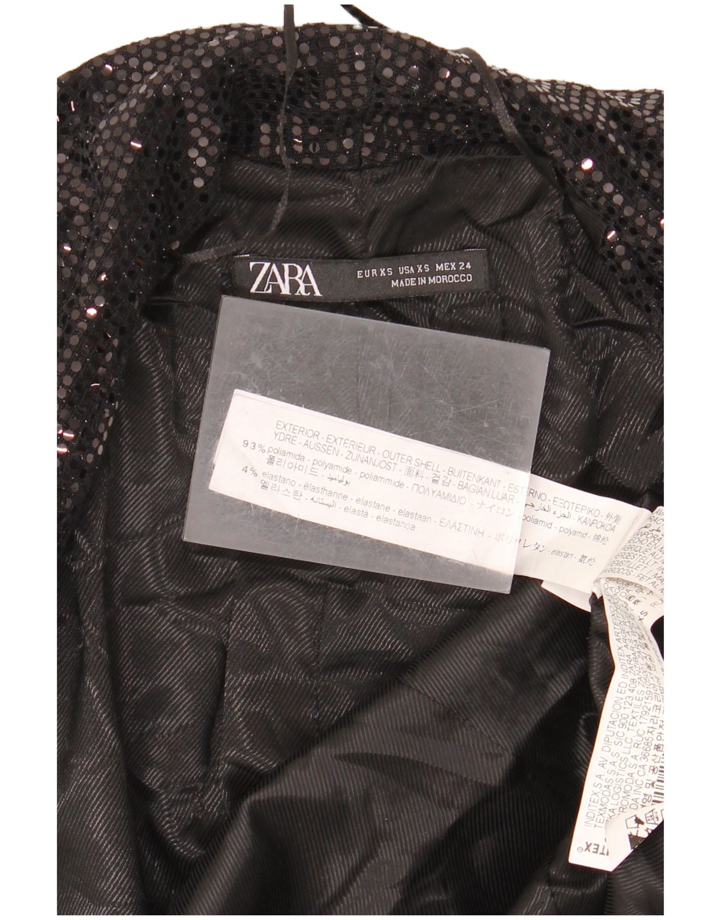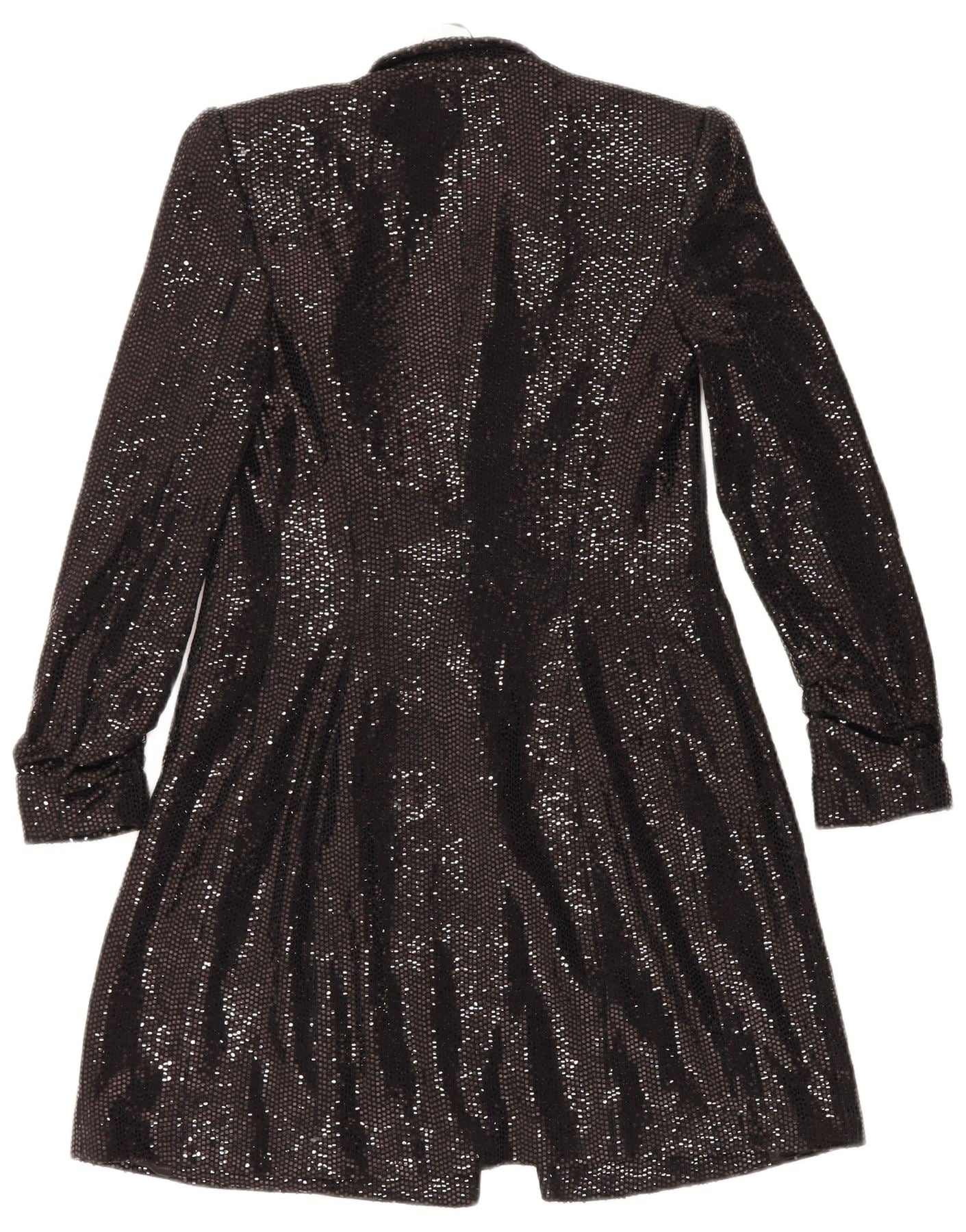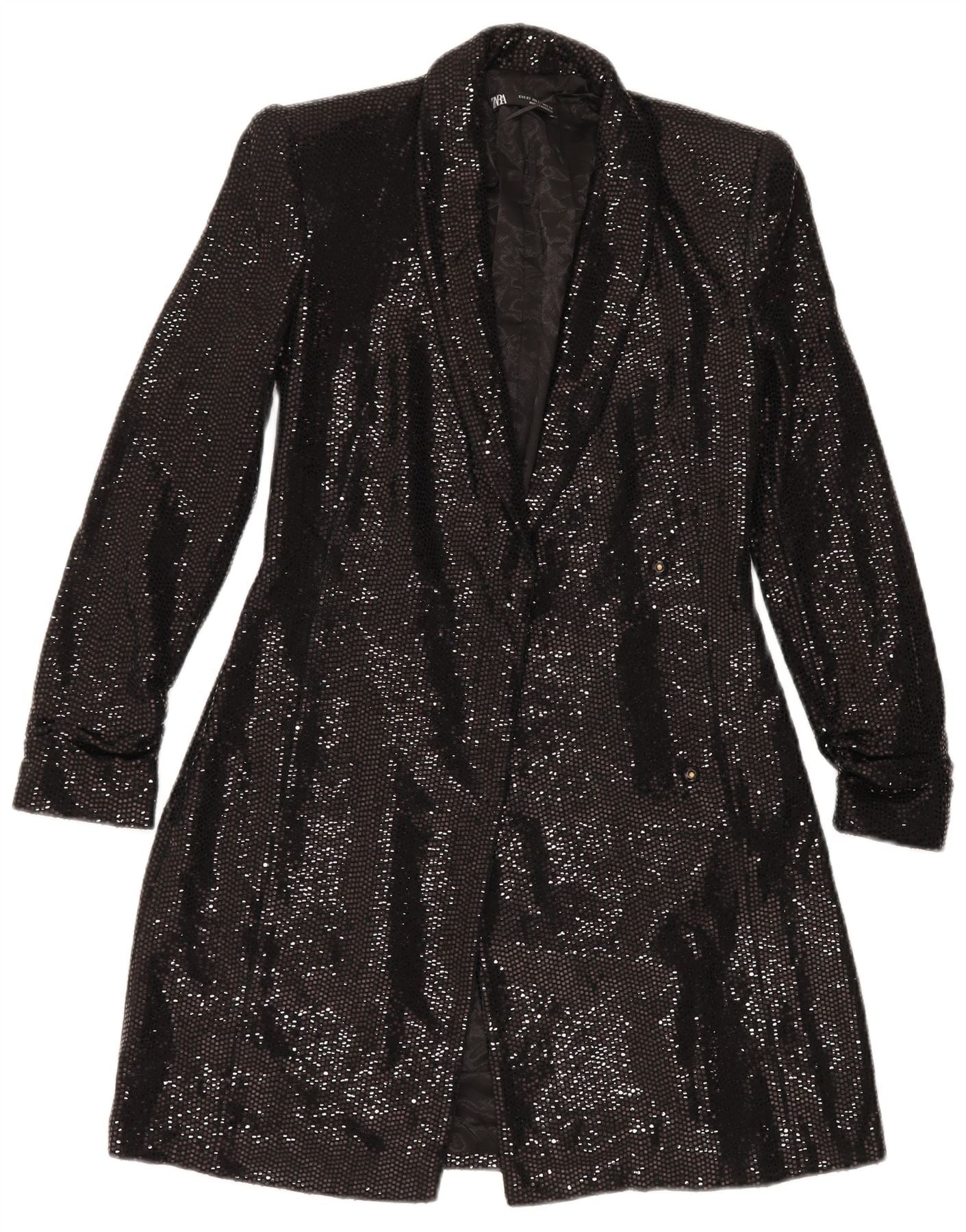 ZARA Femme Veste Blazer Ouverte Longue UK 6 XS Noir Polyamide