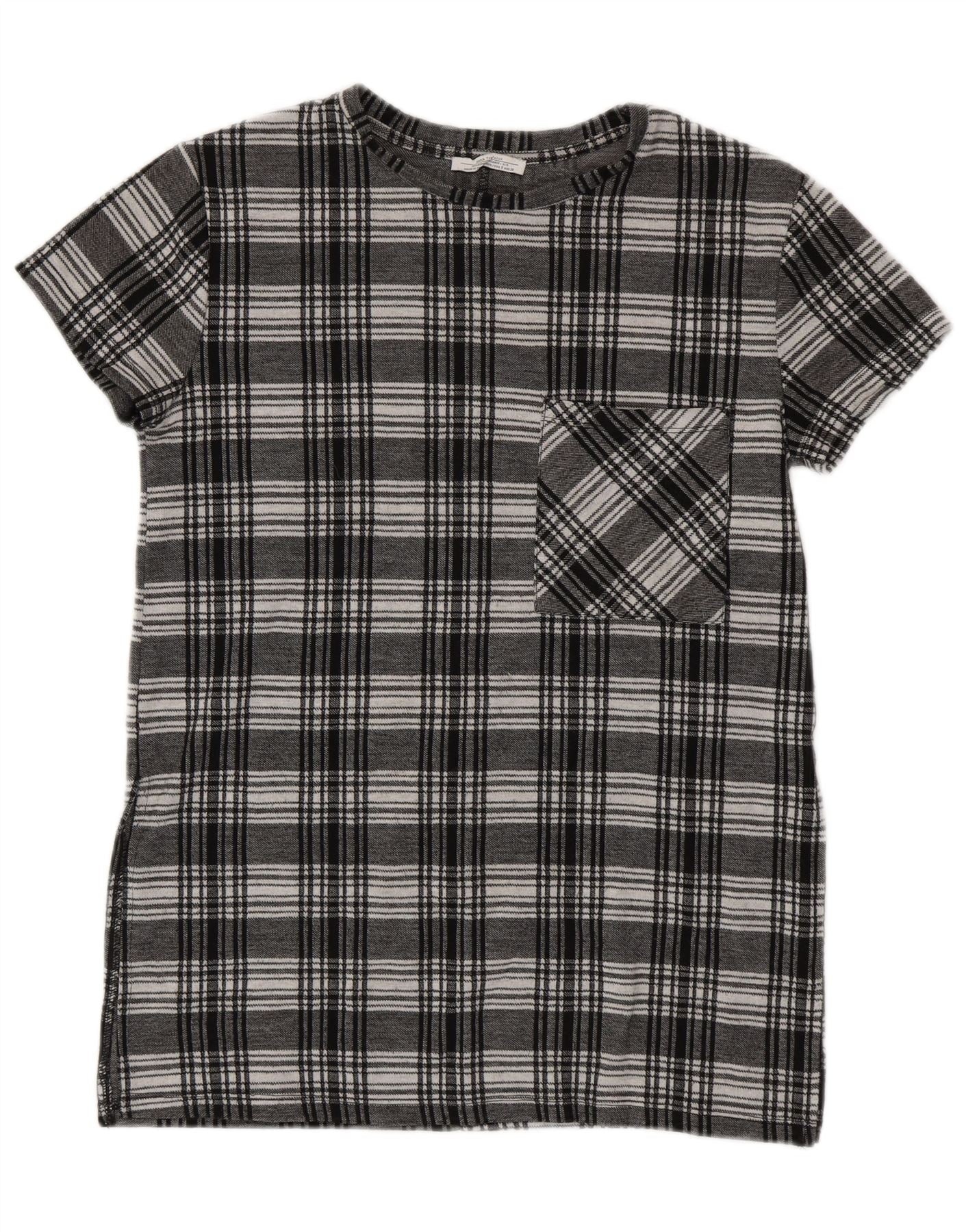 ZARA Chemisier long à manches courtes pour femme UK 10 Petit carreaux noirs