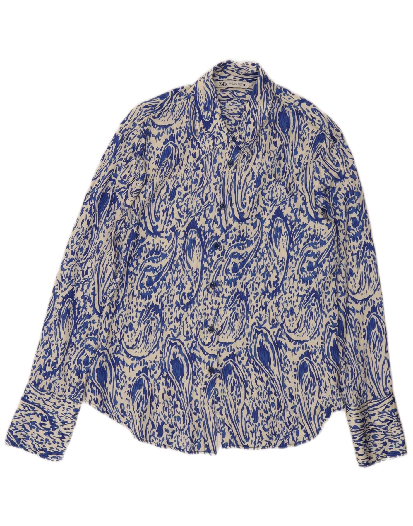 Zara Chemise ample pour femme UK 10 Petit Bleu Paisley