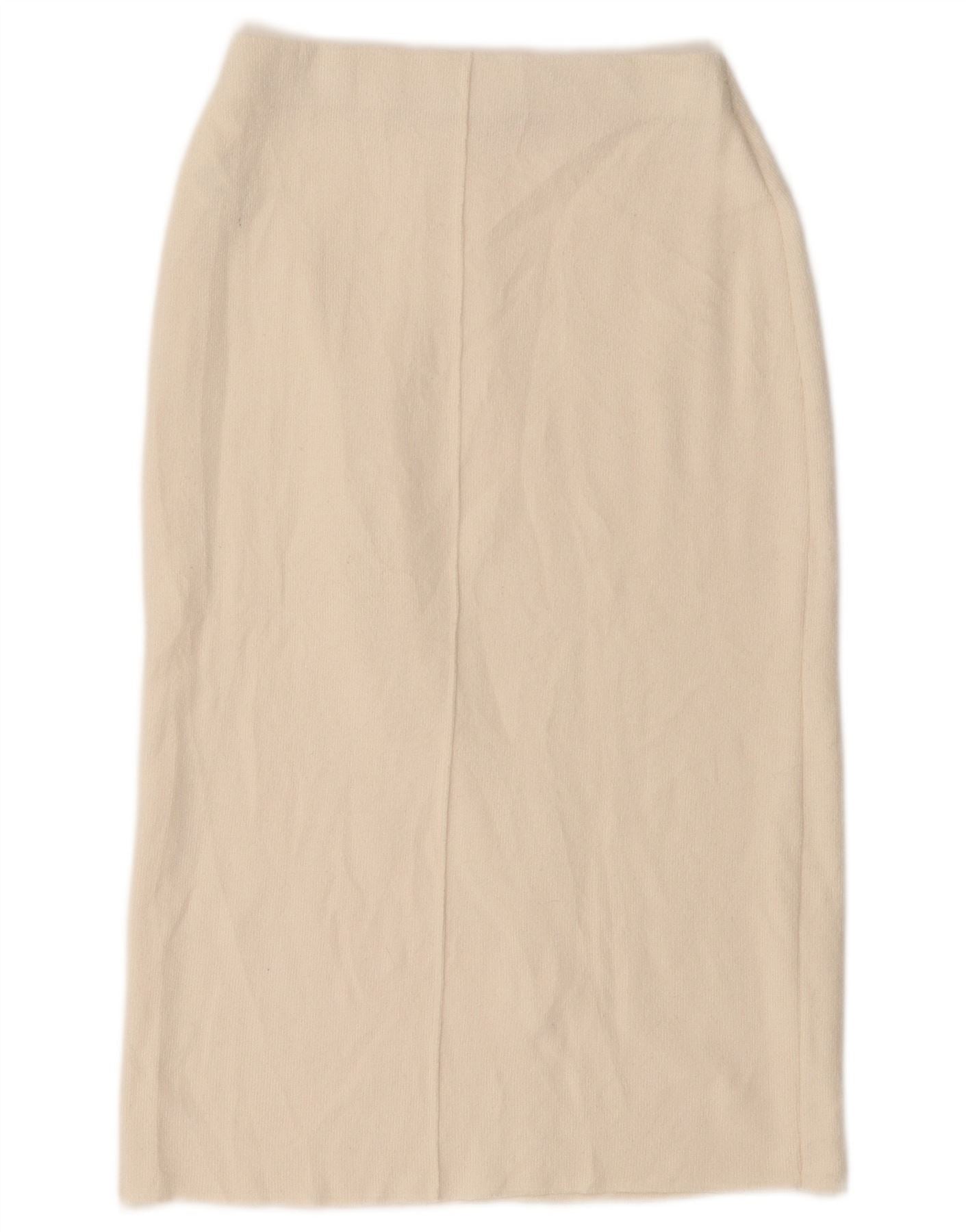 ZARA Femme Jupe Droite Midi Petit W26 Polyester Blanc Cassé