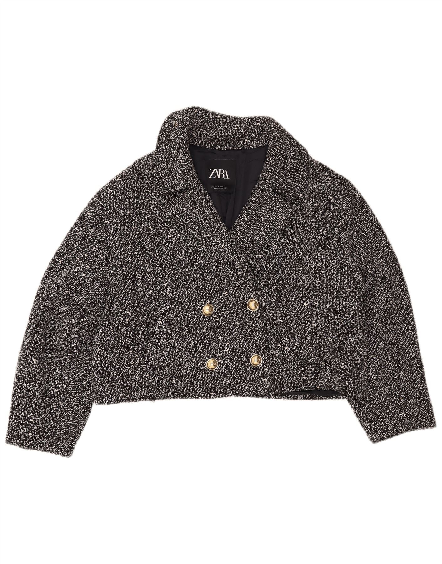ZARA Veste blazer courte surdimensionnée pour femme UK 18 XL Noir moucheté