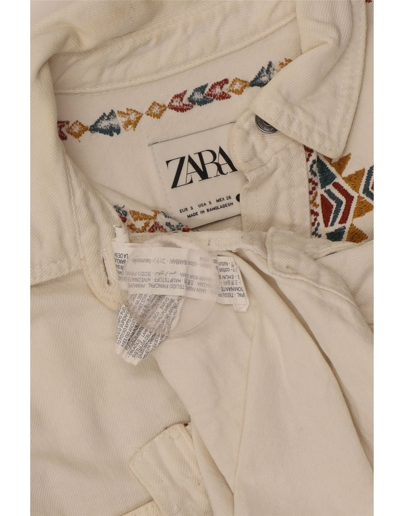 Zara Chemise surdimensionnée pour femme UK 10 Petit coton géométrique blanc