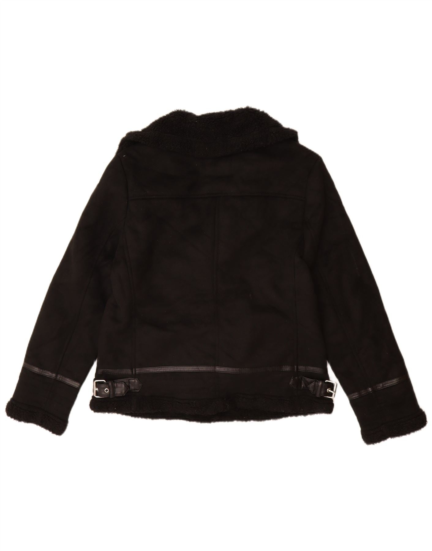 ZARA Veste Sherpa Biker Femme UK 12 Medium Noir Polyester