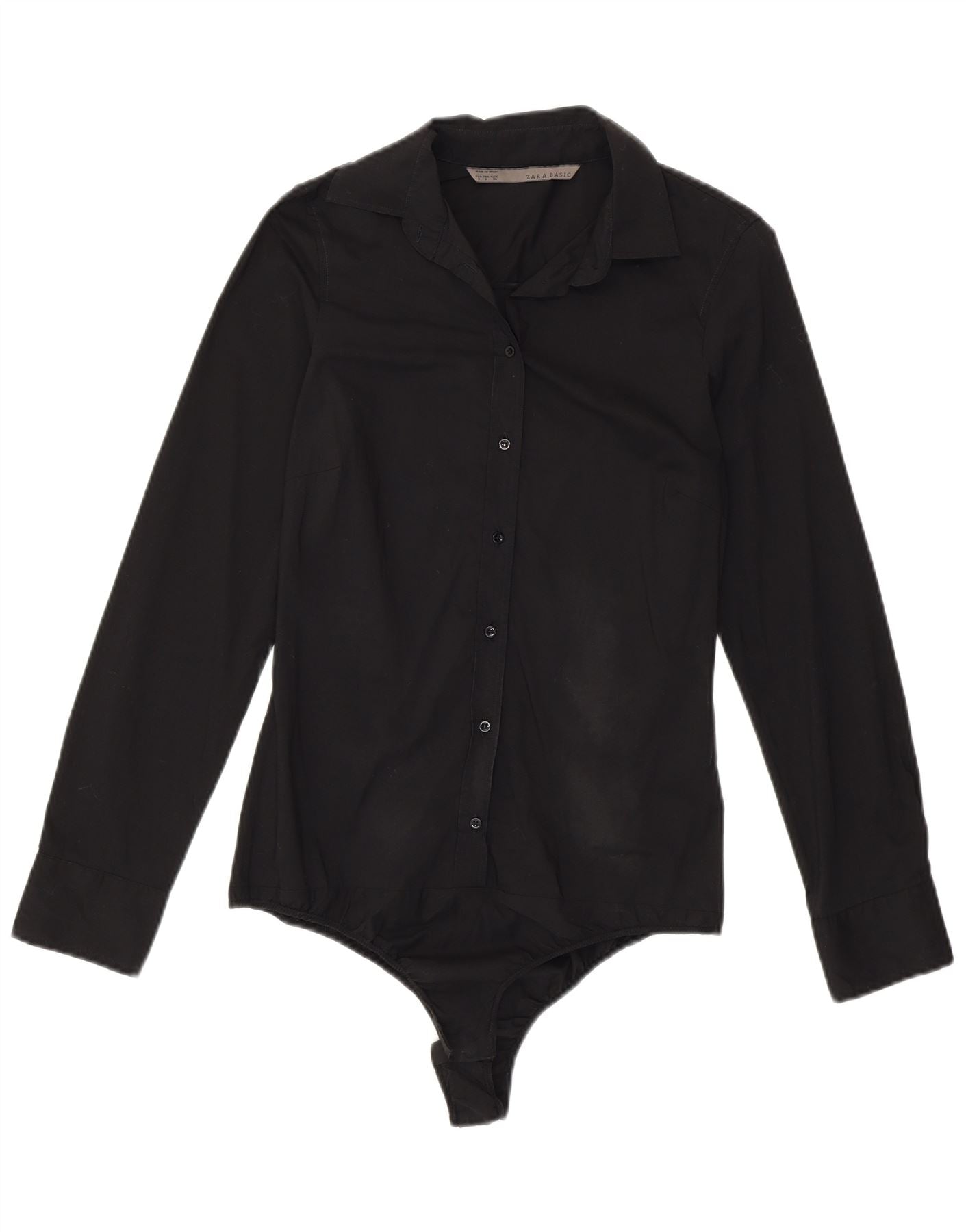 ZARA Womens Shirt Bodysuit UK 10 Small Black