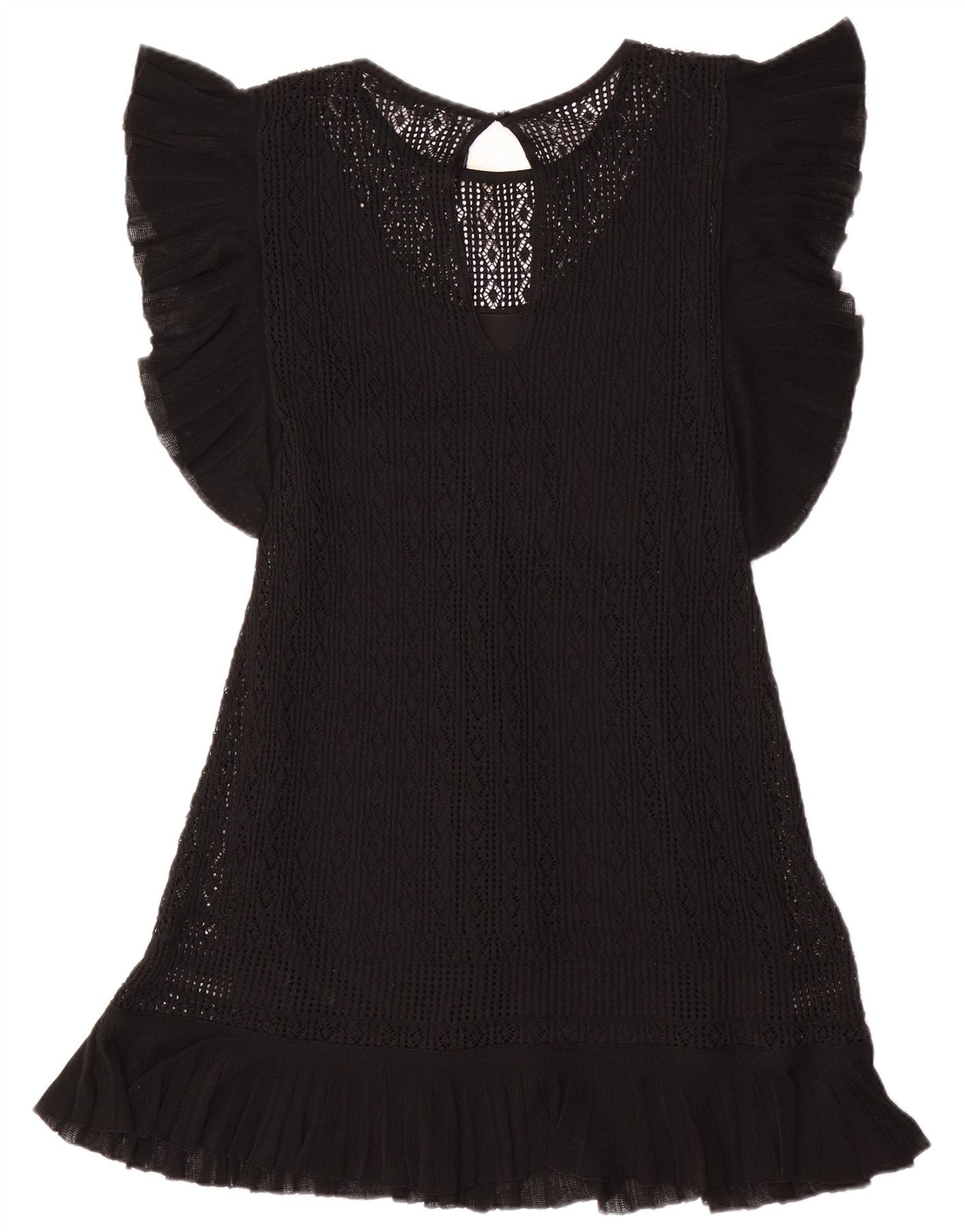 ZARA Robe pull à manches courtes pour femme UK 12 Polyester noir moyen