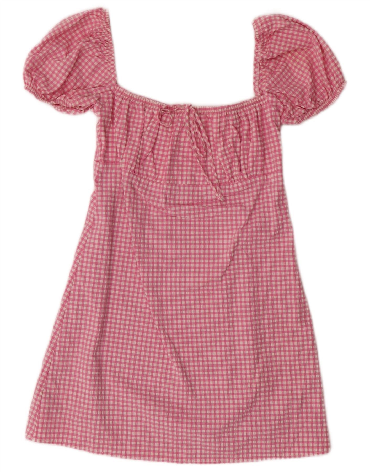Zara Robe d'été à manches courtes pour femme UK 12 Rose moyen Vichy Bohème