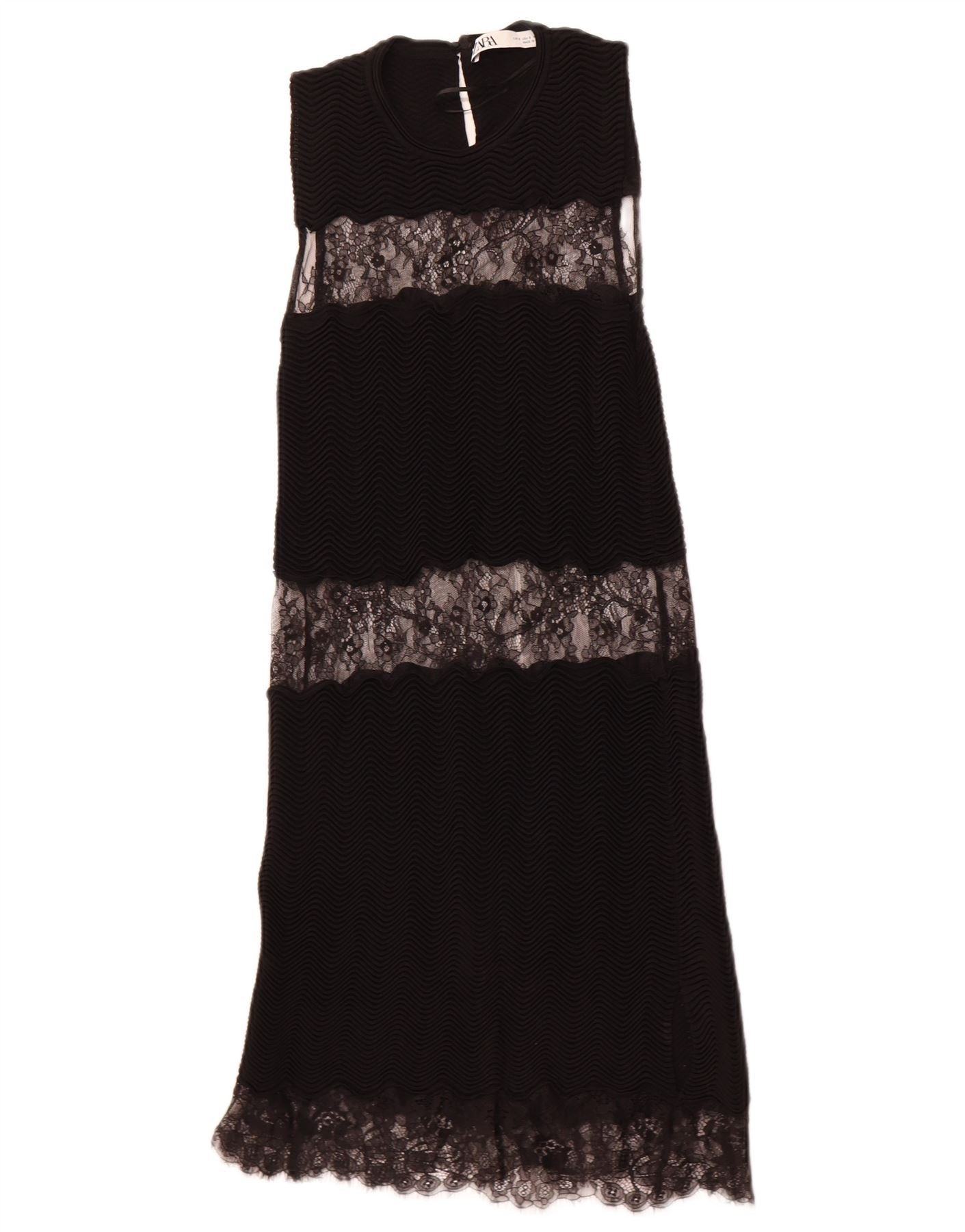 ZARA Robe longue en dentelle sans manches pour femme UK 8 Small Viscose noire