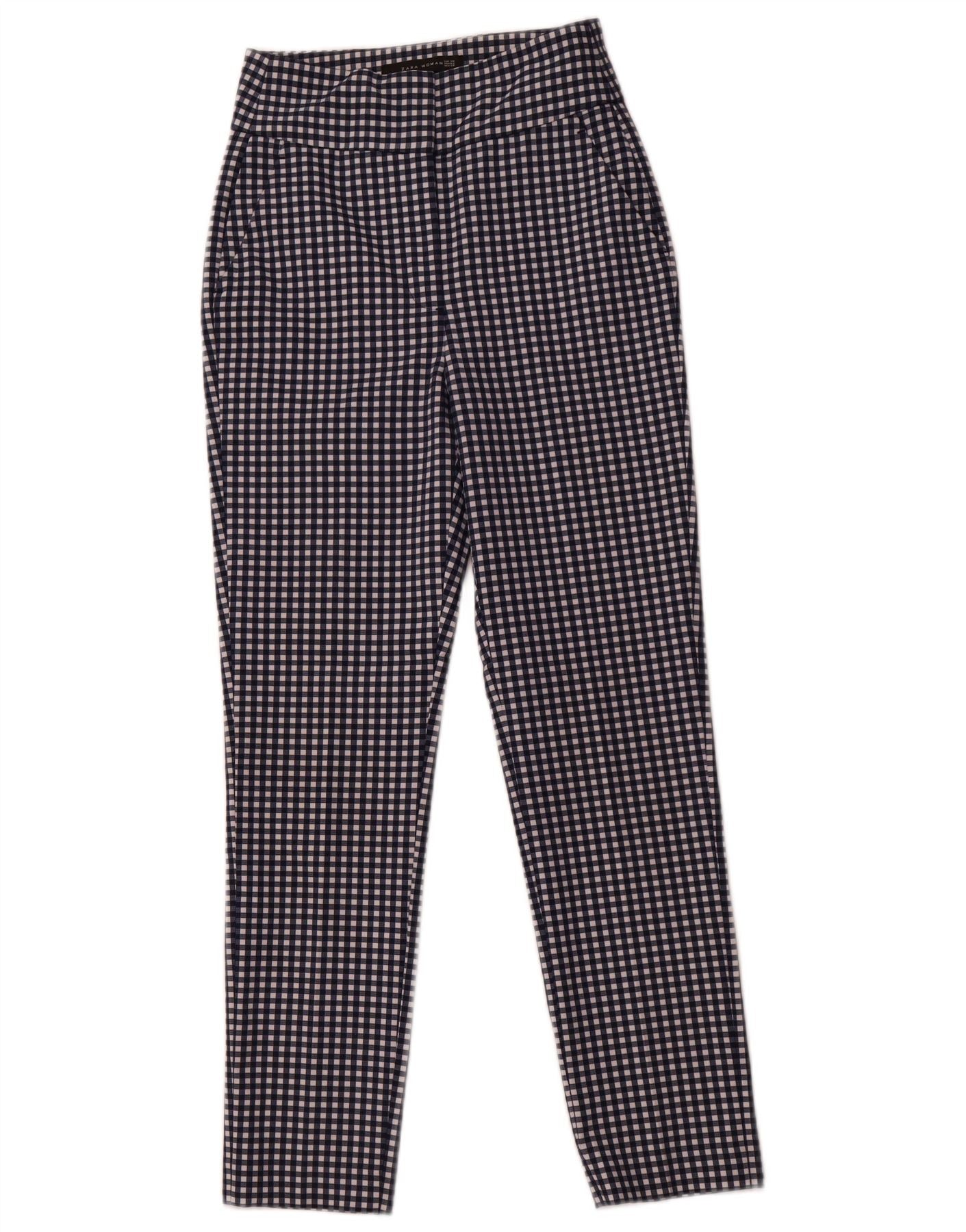 ZARA Pantalon Chino Fuselé Femme EU 34 2XS W24 L28 Bleu Marine Vichy