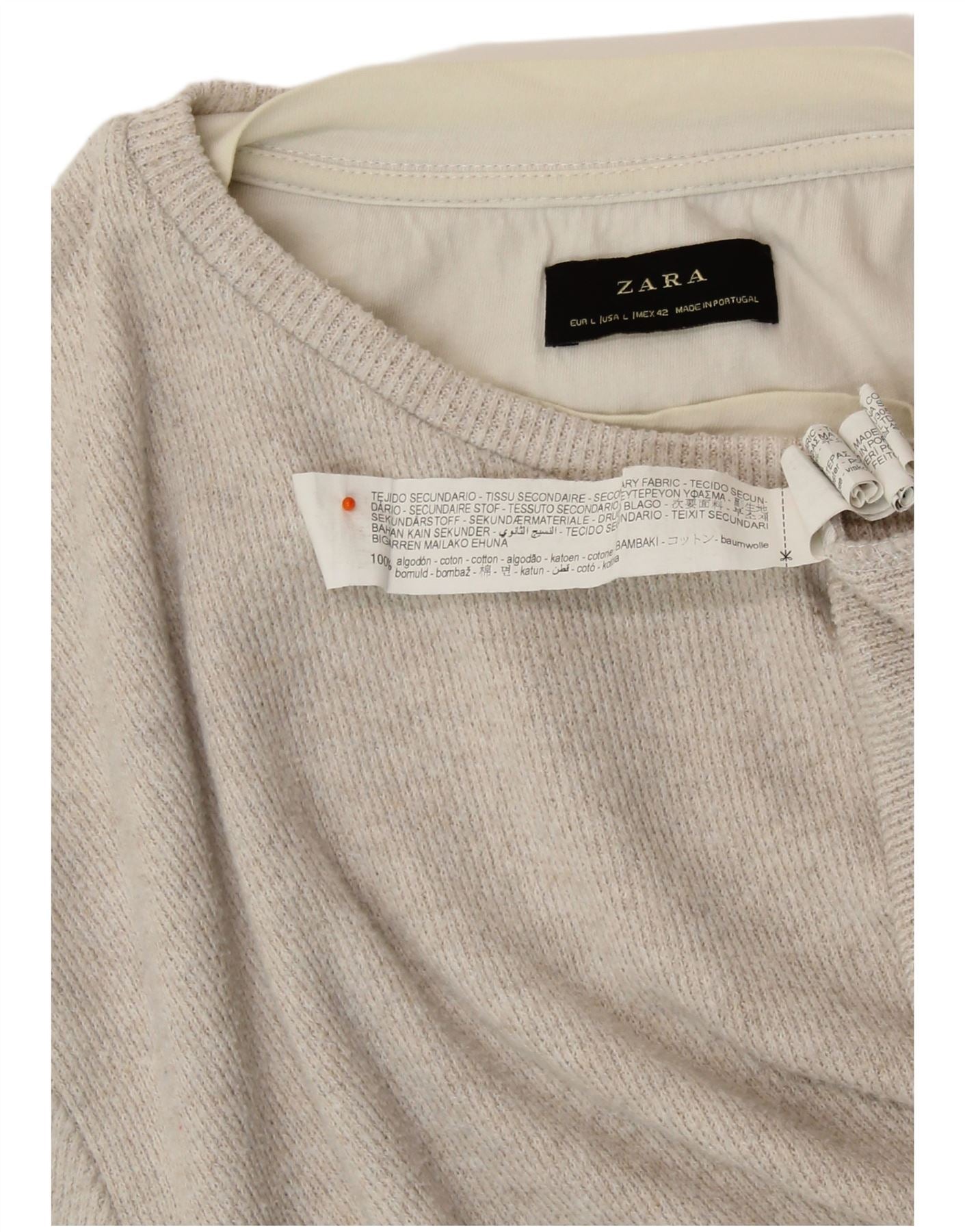 ZARA Femme Top Manches Longues UK 16 Large Beige Coton