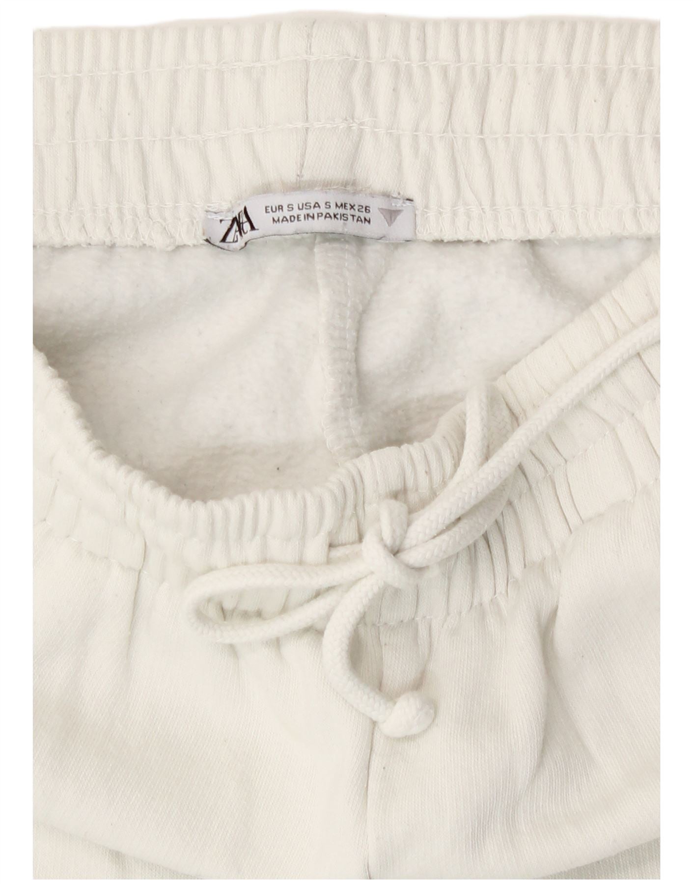 Zara Femme Pantalon De Survêtement Joggers UK 8 Petit Coton Blanc