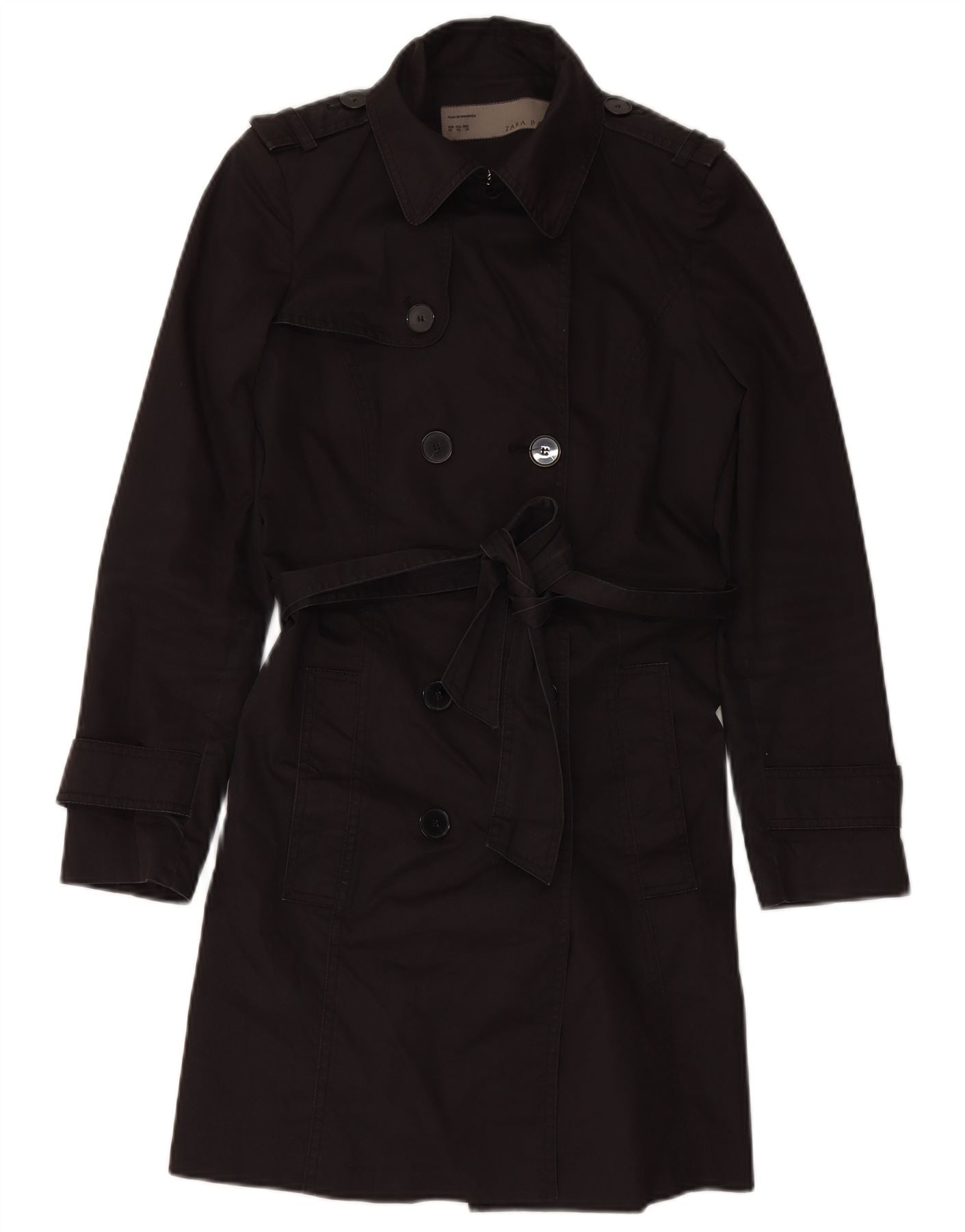 ZARA Femme Trench Coat UK 6 XS Coton Noir
