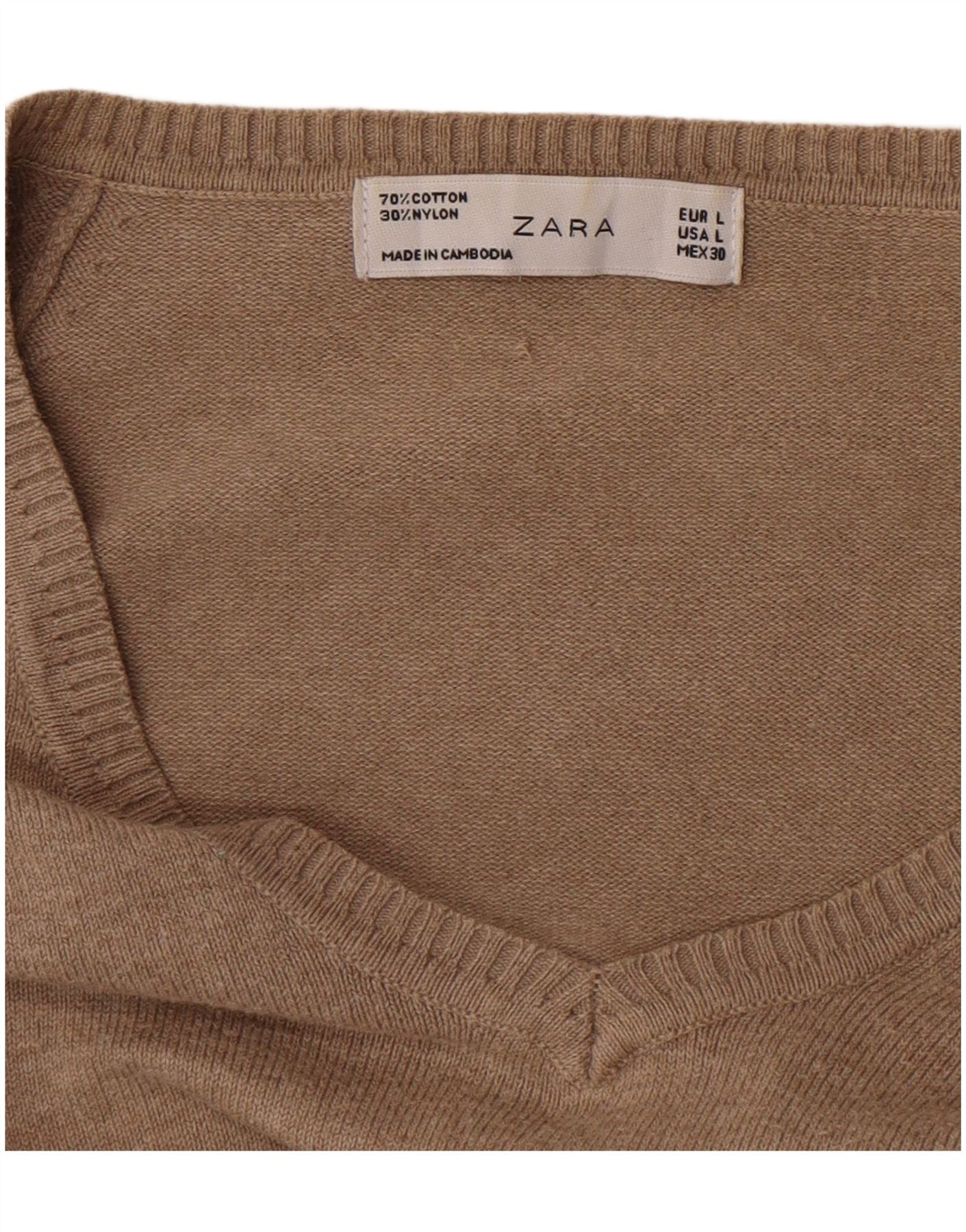 Zara Pull col V pour femme UK 14 Large Marron Coton