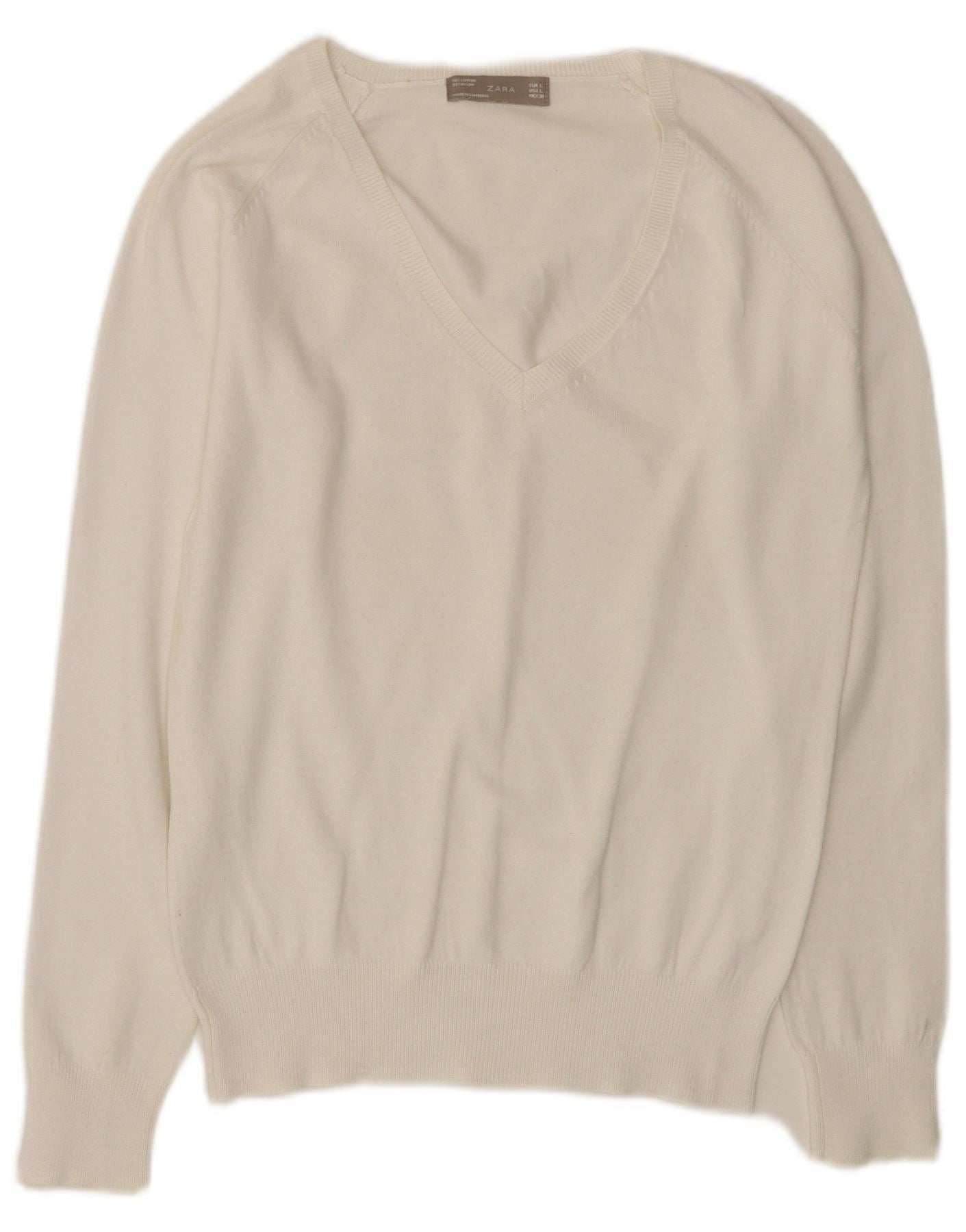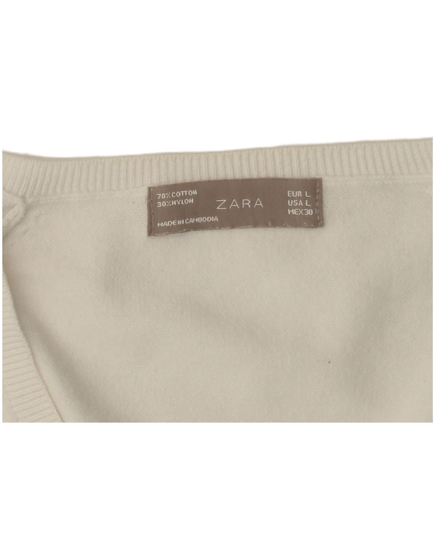ZARA Pull col en V pour femme UK 14 Large Blanc