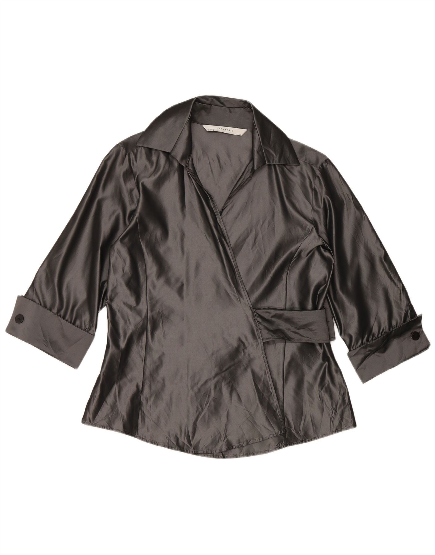 Zara Womens Wrap 3/4 Sleeve Shirt Blouse UK 14 Large Gris Acrylique
